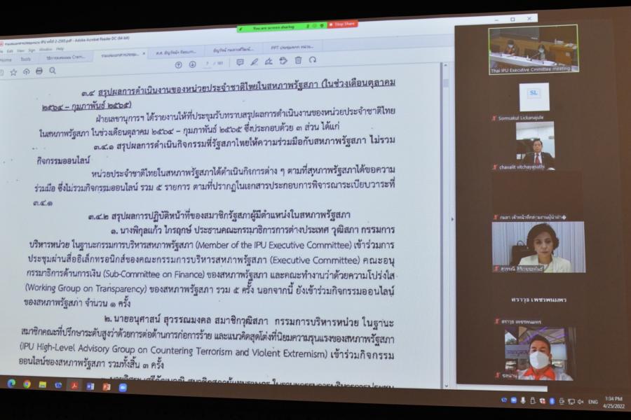 ประชุมคณะกรรมการบริหารหน่วยประจำชาติไทยในสหภาพรัฐสภา ครั้งที่ 2/2565 ผ่านสื่ออิเล็กทรอนิกส์