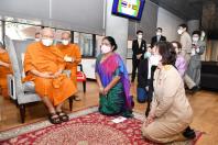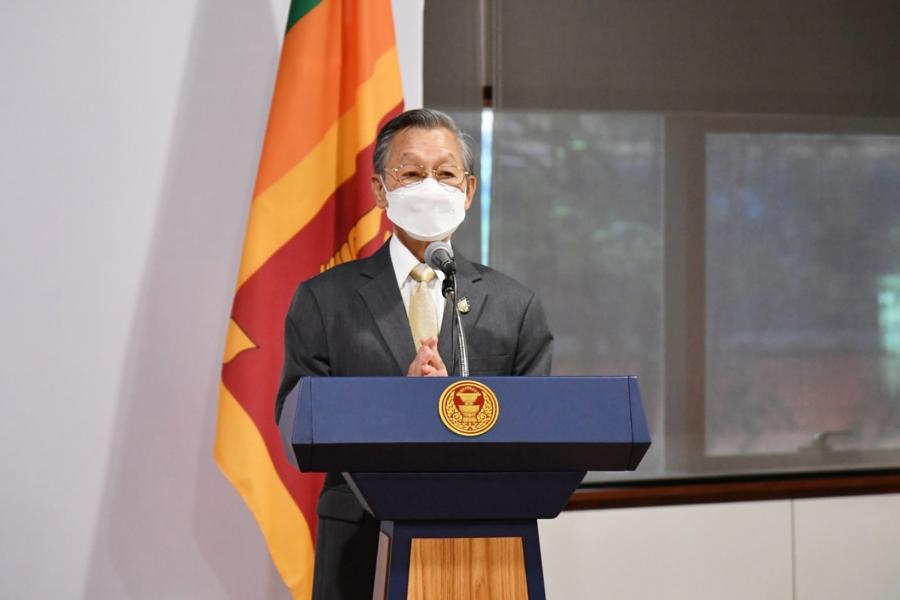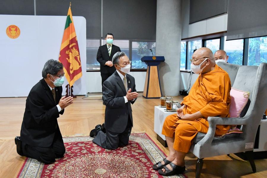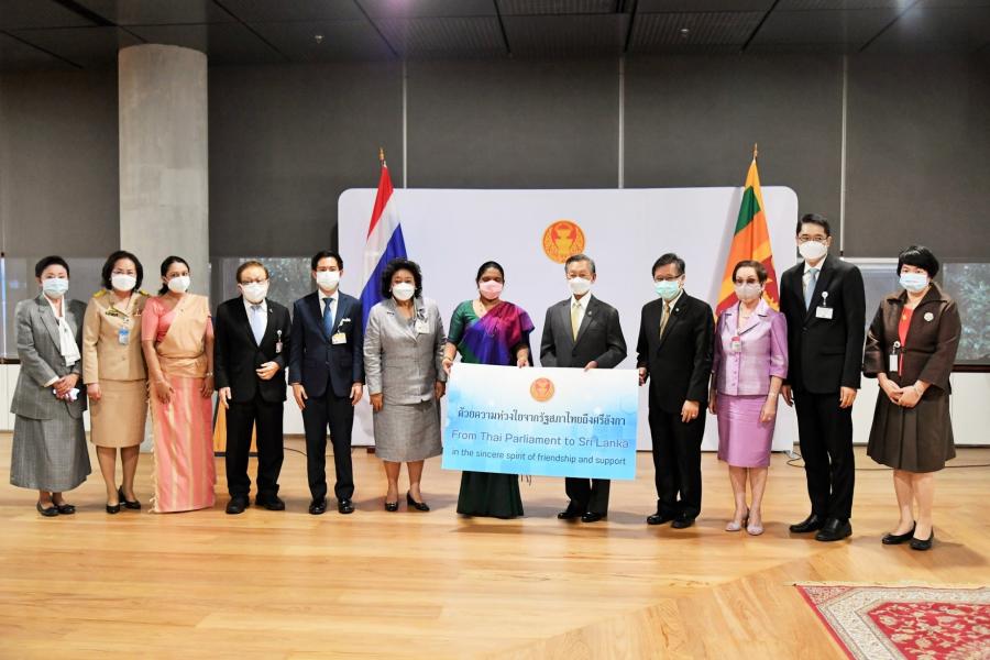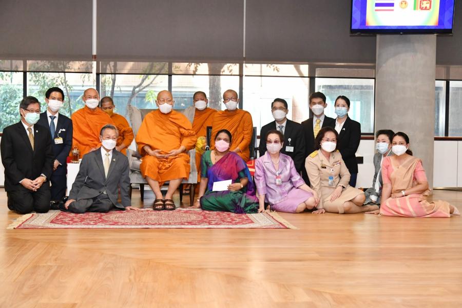 สมเด็จพระมหาธีราจารย์ กล่าวว่า ได้ติดตามสถานการณ์และเหตุการณ์ต่าง ๆ ของโลกมาอย่างต่อเนื่อง ทั้งเรื่องภัยพิบัติการระบาดของโรคโควิด-19 ภัยสงคราม และภัยด้านเศรษฐกิจ ที่เกิดทับถมมาอย่างต่อเนื่อง ทำให้เพื่อนร่วมโลกของเรา ไม่ว่าจะชาติหรือศาสนาใดก็ตาม ได้รับผลกระทบ จึงรู้สึกปลื้มใจที่ประธานรัฐสภาและผู้ร่วมบริจาคได้ให้ความสำคัญและให้ความอนุเคราะห์ในครั้งนี้ โดยเป็นการแสดงออกถึงน้ำใจอันประเสริฐและงดงามต่อเพื่อนร่วมชาติของเรา ซึ่งแม้ว่าศรีลังกาจะเป็นประเทศที่มีความเกี่ยวเนื่องกับไทยในด้านพระพุทธศาสนาก็จริง แต่มีผู้ที่นับถือศาสนาอื่นได้แสดงน้ำใจมาด้วย เช่นเดียวประเทศอื่น ๆ ที่เกิดภัยพิบัติขึ้นและประเทศไทยก็ได้ให้ความช่วยเหลือไม่ว่าจะนับถือศาสนาใดก็ตาม ด้านนางโกเลนเน อัปปุหามิลาเค จมินทะ อิโนกา โกโลนเน กล่าวขอบคุณในมิตรไมตรีที่ทางรัฐสภามีให้ซึ่งเป็นเสมือนสัญลักษณ์แสดงความสัมพันธ์อันดีระหว่างไทยกับศรีลังกา โดยศรีลังกาและไทยนั้นได้ผ่านประสบการณ์ที่ยากลำบากมาคล้าย ๆ กัน และเชื่อว่าศรีลังกาจะผ่านพ้นวิกฤตนี้ไปได้