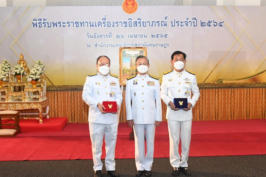 วันอังคารที่ 26 เมษายน 2565 เวลา 09.30 นาาฬิกา ณ ห้องโถงหน้าห้องอบรม โซน C ชั้น B1 อาคารรัฐสภา ตามที่ พระบาทสมเด็จพระเจ้าอยู่หัว ทรงพระกรุณาโปรดเกล้าฯ พระราชทานเครื่องราชอิสริยาภรณ์อันเป็นที่เชิดชูยิ่งช้างเผือกและเครื่องราชอิสริยาภรณ์อันมีเกียรติยศยิ่งมงกุฎไทย ประจำปี 2564 เนื่องในโอกาสพระราชพิธีเฉลิมพระชนมพรรษา วันที่ 28 กรกฎาคม 2564 และทรงพระกรุณาโปรดเกล้าฯ ให้ส่วนราชการและหน่วยงานต่าง ๆ จัดพิธีรับพระราชทานเครื่องราชอิสริยาภรณ์หน้าพระบรมฉายาลักษณ์พระบาทสมเด็จพระเจ้าอยู่หัว นั้น โอกาสนี้ สำนักงานเลขาธิการสภาผู้แทนราษฎร ได้จัดพิธีรับพระราชทานเครื่องราชอิสริยาภรณ์ ประจำปี 2564 โดยมี