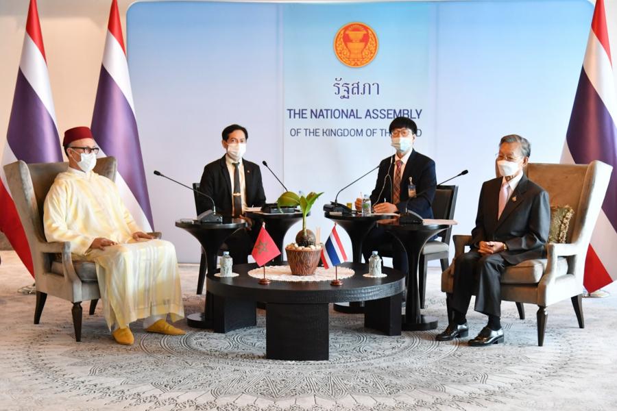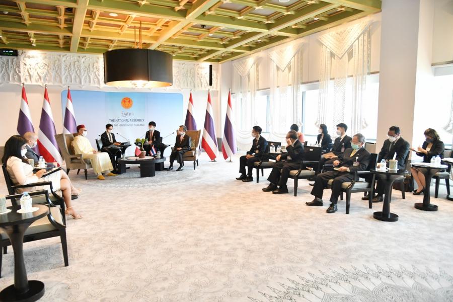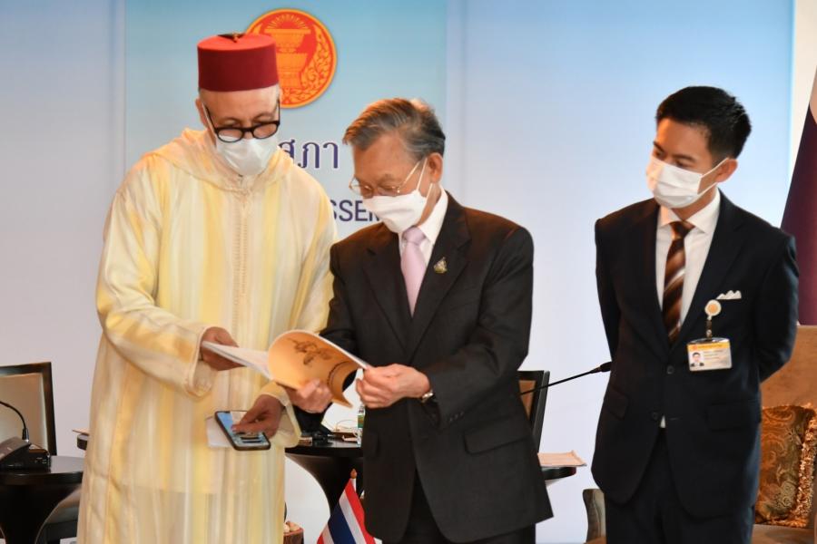 นายชวน หลีกภัย ประธานรัฐสภา กล่าวต้อนรับ และได้หารือเกี่ยวกับความสัมพันธ์ระหว่างไทยกับโมร็อกโกที่มีมาอย่างยาวนานและต่อเนื่องในทุกด้าน รวมทั้งด้านนิติบัญญัติซึ่งมีกลไกการดำเนินงานที่สำคัญผ่านกลุ่มมิตรภาพสมาชิกรัฐสภาของทั้งสองประเทศ นอกจากนี้ โมร็อกโกยังมีพื้นฐานของระบบรัฐสภาที่ยึดหลักประชาธิปไตยอันมีพระมหากษัตริย์เป็นประมุขเช่นเดียวกันกับไทย โดยในปี 2562 ประธานรัฐสภาฯ มีโอกาสให้การต้อนรับประธานรัฐสภาของโมร็อกโก ซึ่งขณะนั้นได้เดินทางมาเข้าร่วมประชุมใหญ่สมัชชารัฐสภาอาเซียน ครั้งที่ 40 ซึ่งรัฐสภาไทยเป็นเจ้าภาพ และประธานรัฐสภาฯ ได้กล่าวขอบคุณโมร็อกโกที่สนับสนุนไทยในเวทีองค์กรความร่วมมืออิสลาม (OIC) พร้อมกล่าวชื่นชมโมร็อกโกที่มีวิสัยทัศน์และเชื่อมั่นในศักยภาพของอาเซียนในอนาคต ซึ่งรัฐสภาไทยมีความยินดีที่จะสนับสนุนความร่วมมือกับโมร็อกโกตลอดช่วงที่เอกอัครราชทูตฯ ปฏิบัติหน้าที่ในประเทศไทยและต่อไปในอนาคต
