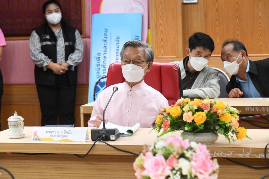 ประธานรัฐสภา ในฐานะประธานมูลนิธิเพื่อการศึกษาและสังคม ลงพื้นที่ 4 จังหวัดภาคตะวันออกเฉียงเหนือ เพื่อรับฟังปัญหาความเดือดร้อน และพบปะเยี่ยมเยือนส่วนราชการและประชาชน พร้อมทั้งมอบหน้ากากอนามัยให้ประชาชนใช้ป้องกันโควิด-19 จังหวัดชัยภูมิ เป็นวันแรก