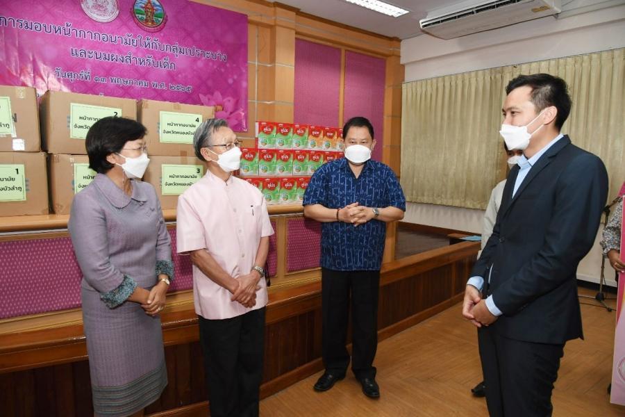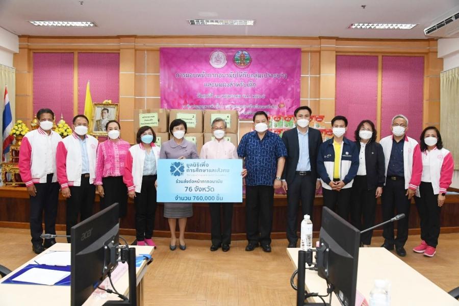 สำหรับหน้ากากอนามัยที่นำมามอบในครั้งนี้ ได้รับการสนับสนุนจาก "มูลนิธิเพื่อการศึกษาและสังคม" โดยสมาคมฮกเกี้ยนแห่งประเทศไทย มูลนิธิเพื่อสัมพันธภาพไทย จีน หนังสือพิมพ์ซิงเสียนเยอะเป้า บริษัท ออโรร่า ซักเซส จำกัด บริษัท CBS Shoes บริษัท ไทยซิง สตีล จำกัด และบริษัท หยงชิง สตีล (ไทยแลนด์) จำกัด และหน้ากากอนามัยสำหรับเด็ก ได้รับการสนับสนุนจาก "โครงการ MiniMask หน้ากากเพื่อเด็ก" โดย คณะนักศึกษาประกาศนียบัตรชั้นสูงการเมืองการปกครองในระบอบประชาธิปไตยสำหรับนักบริหารระดับสูง (ปปร.) รุ่นที่ 24 นำโดย นายเทวัญ ลิปตพัลลภ และนายสุภดิช อากาศฤกษ์ สมาชิกสภาผู้แทนราษฎร ดร.ชัยรัตน์ จำนงค์การ รวมทั้งภาคเอกชนต่าง ๆ ประกอบด้วย สมาคมฮกเกี้ยนแห่งประเทศไทย บริษัท บาโอจิ จำกัด บริษัท เซียน หัว ไท้ จำกัด นายใช่ เซี่ยว ซิง สมาคมการค้าฟูเจี้ยนอาน บริษัท จิ่ว หลง ไทย นายโหลว เจี้ยน หยฟู่ นายจักร สื่อมโนธรรม บริษัท จุไทย กรุ๊ปจำกัด และบริษัท จริงใจเสมอ จำกัด