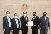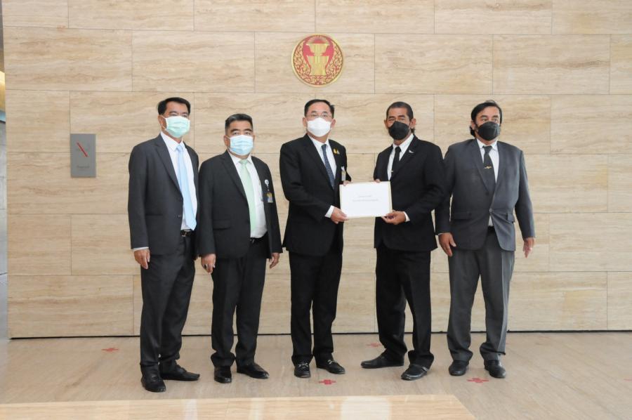 นายอนุชา นาคาศัย รัฐมนตรีประจำสำนักนายกรัฐมนตรี รับยื่นหนังสือจาก นายกริช พลเดชวิสัย เลขาธิการสภาสื่อออนไลน์เพื่อความยุติธรรมไทย