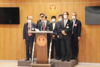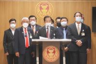 นายชวลิต วิชยสุทธิ์ รองประธานคณะ กมธ.การกฎหมาย การยุติธรรมและสิทธิมนุษยชน คนที่หนึ่ง และคณะ แถลงข่าวเกี่ยวกับพระราชบัญญัติภาษีที่ดินและสิ่งปลูกสร้าง พ.ศ. 2562