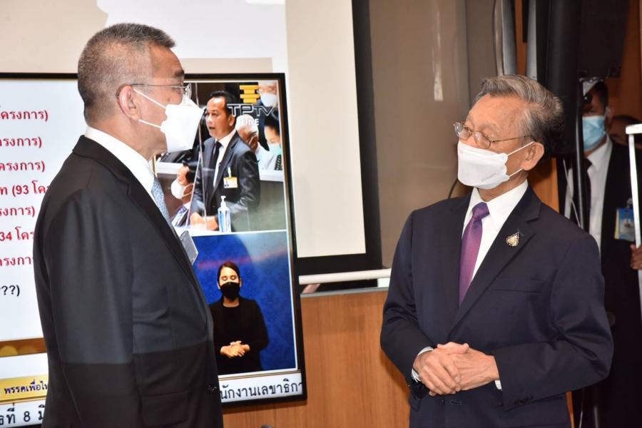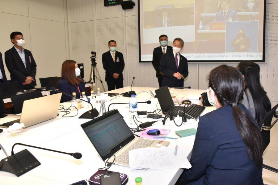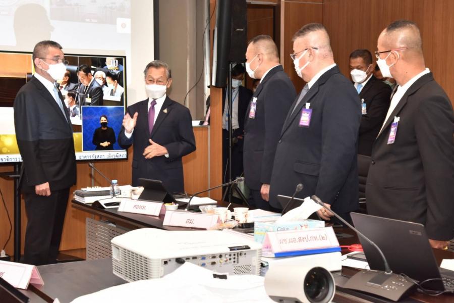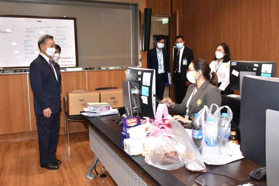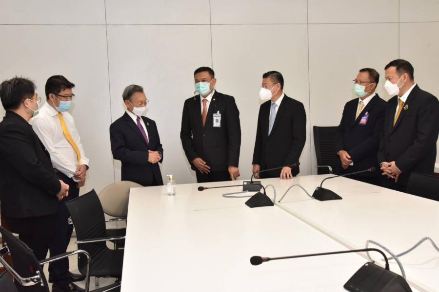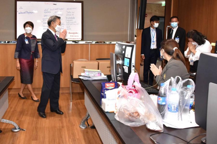 ประธานสภาผู้แทนราษฎร พร้อมด้วย นพ.สุกิจ อัถโถปกรณ์ ที่ปรึกษาประธานสภาผู้แทนราษฎร และนายราเมศ รัตนะเชวง เลขานุการประธานรัฐสภา ตรวจเยี่ยมและให้กำลังใจเจ้าหน้าที่สำนักการประชุมและชวเลข