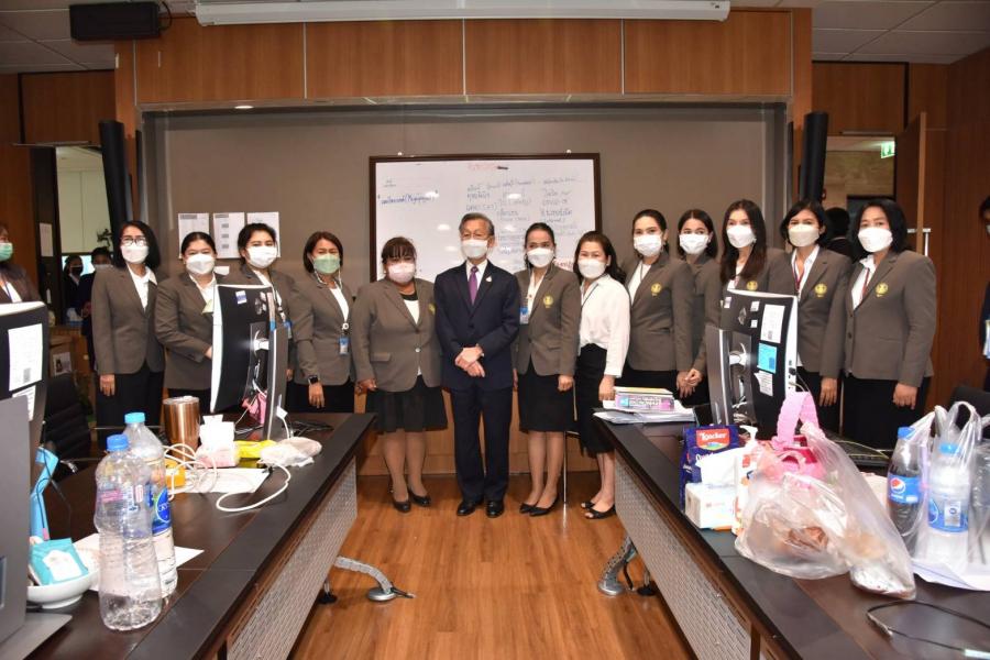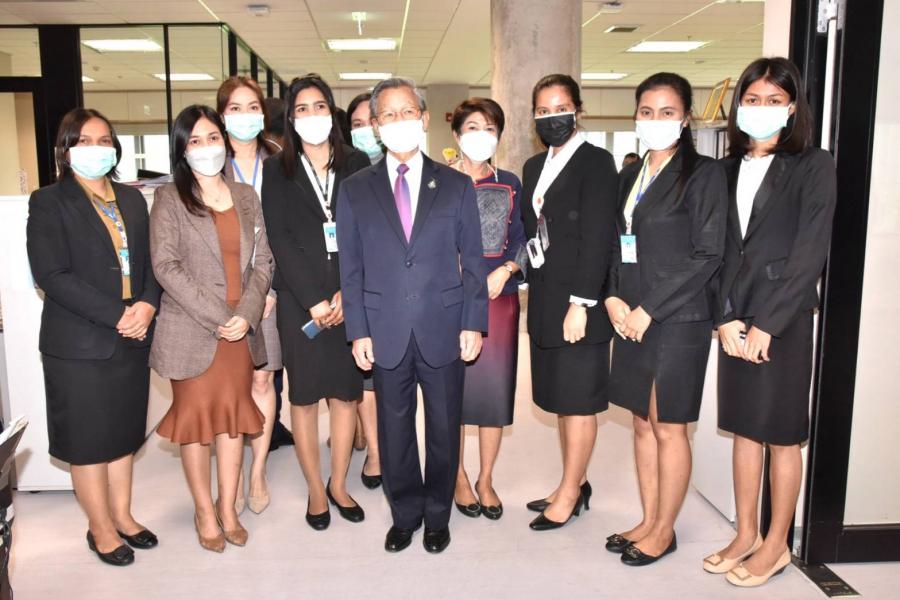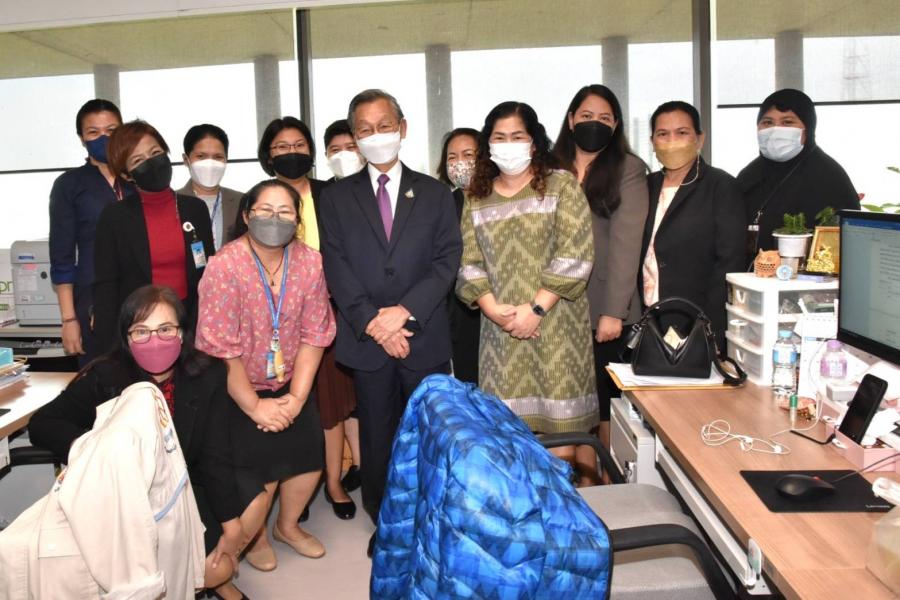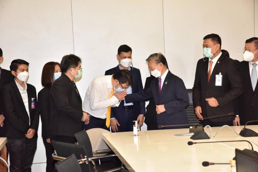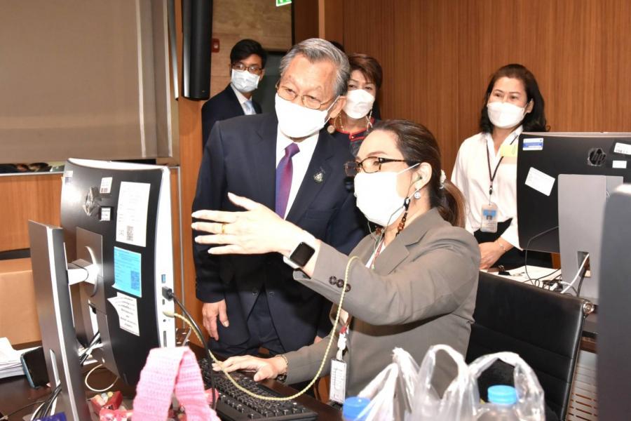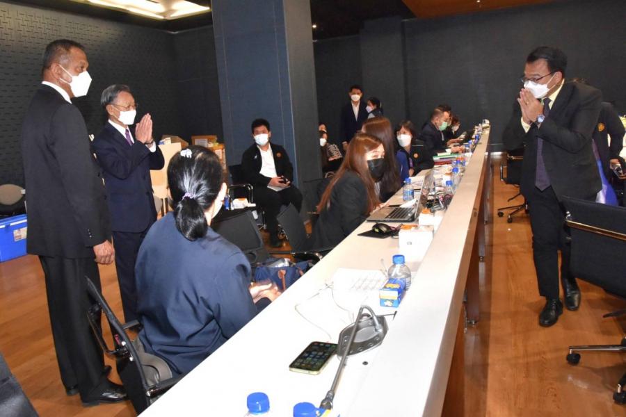 ประธานสภาผู้แทนราษฎร พร้อมด้วย นพ.สุกิจ อัถโถปกรณ์ ที่ปรึกษาประธานสภาผู้แทนราษฎร และนายราเมศ รัตนะเชวง เลขานุการประธานรัฐสภา ตรวจเยี่ยมและให้กำลังใจเจ้าหน้าที่สำนักการประชุมและชวเลข