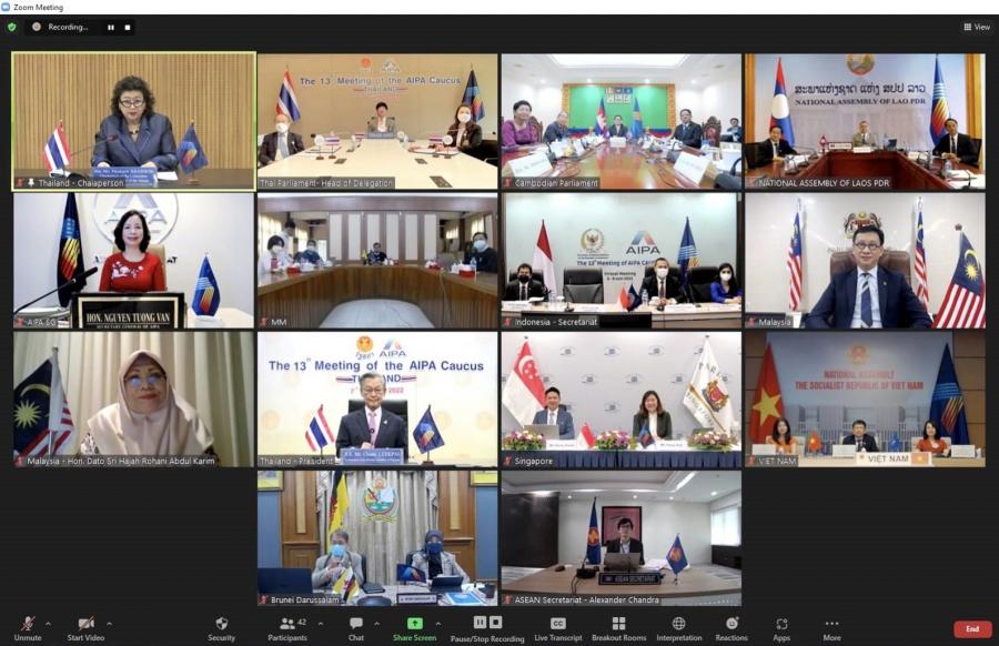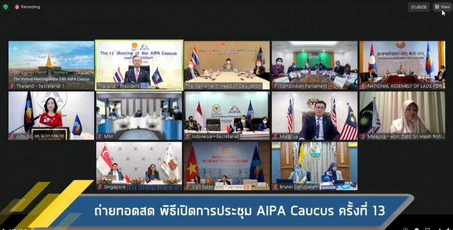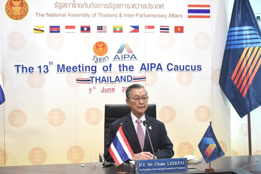 วันอังคารที่ 7 มิถุนายน 2565 เวลา 08.30 – 15.30 นาฬิกา ณ ห้องประชุมคณะกรรมการบริหารหน่วยประจำชาติไทย 406 และห้องประชุม N 406 ชั้น 4  อาคารรัฐสภา นายชวน หลีกภัย ประธานรัฐสภา เป็นประธานในพิธีเปิดการประชุม AIPA Caucus ครั้งที่ 13 ผ่านสื่ออิเล็กทรอนิกส์ ภายใต้หัวข้อเรื่อง “ความร่วมมือด้านเศรษฐกิจดิจิทัลในอาเซียนภายหลังการระบาดของโรคติดเชื้อไวรัสโคโรนาสายพันธุ์ใหม่ 2019” โดยคณะผู้แทนรัฐสภาไทยในการประชุม AIPA Caucus ครั้งที่ 13 ประกอบด้วย