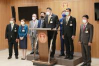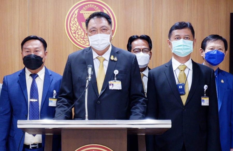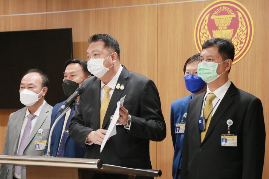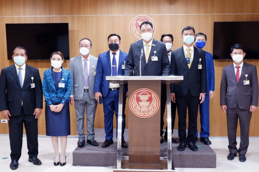 นายสุชาติ ชมกลิ่น ส.ส.พรรคพลังประชารัฐ ในฐานะรัฐมนตรีว่าการกระทรวงแรงงาน และคณะ แถลงข่าว