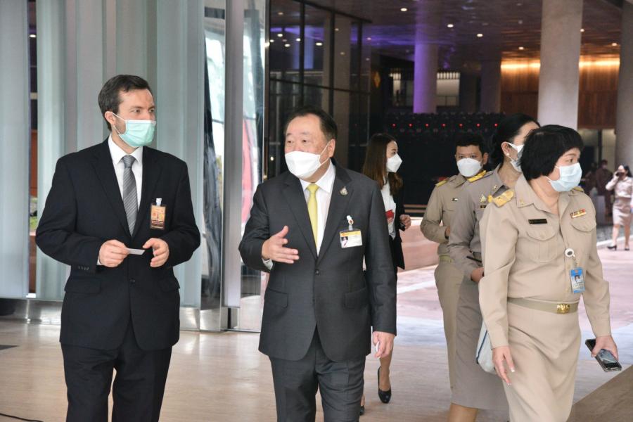 โอกาสนี้ นายสุชาติ ตันเจริญ รองประธานสภาผู้แทนราษฎร คนที่หนึ่ง มอบหนังสือที่ระลึกจำนวน 2 เล่ม แก่คณะทูตานุทูต ประกอบด้วยหนังสือลายเส้นนักการเมือง ซึ่งเป็นหนังสือที่ได้รวบรวมภาพลายเส้นที่นายชวน หลีกภัย ประธานรัฐสภา บันทึกเหตุการณ์และบุคคลในช่วงเวลาหลาย 10 ปีที่ผ่านมา ซึ่งกระจัดกระจายอยู่ตามสมุดบันทึก เอกสาร รวมทั้งวาระการประชุมต่าง ๆ เพื่อเป็นที่ระลึกแก่เพื่อนนักการเมือง และผู้ร่วมงานในโอกาสครบรอบ 90 ปีแห่งการสถาปนารัฐสภา และหนังสือที่ระลึก 90 ปี รัฐสภา ซึ่งรวบรวมเรื่องราวต่าง ๆ ของรัฐสภา ตลอดระยะ 90 ปีที่ผ่านมา