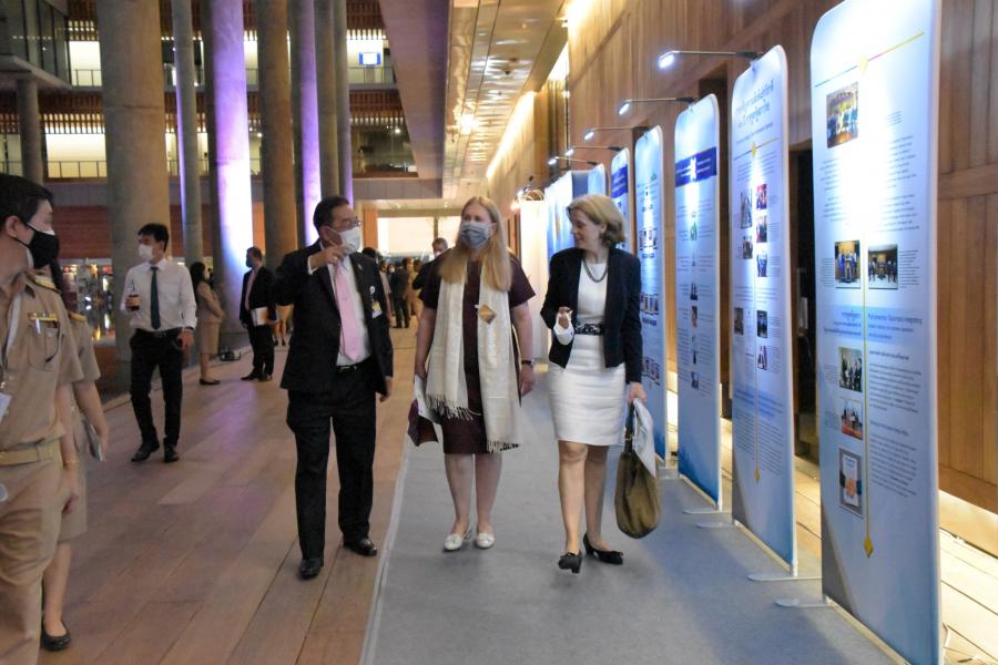 จากนั้น ประธานรัฐสภา นำคณะทูตานุทูต เยี่ยมชมนิทรรศการ "90 ปีรัฐสภา การเดินทางและความหวัง"