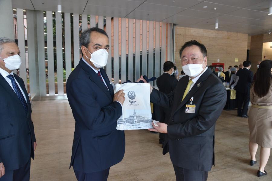 โอกาสนี้ นายสุชาติ ตันเจริญ รองประธานสภาผู้แทนราษฎร คนที่หนึ่ง มอบหนังสือที่ระลึกจำนวน 2 เล่ม แก่คณะทูตานุทูต ประกอบด้วยหนังสือลายเส้นนักการเมือง ซึ่งเป็นหนังสือที่ได้รวบรวมภาพลายเส้นที่นายชวน หลีกภัย ประธานรัฐสภา บันทึกเหตุการณ์และบุคคลในช่วงเวลาหลาย 10 ปีที่ผ่านมา ซึ่งกระจัดกระจายอยู่ตามสมุดบันทึก เอกสาร รวมทั้งวาระการประชุมต่าง ๆ เพื่อเป็นที่ระลึกแก่เพื่อนนักการเมือง และผู้ร่วมงานในโอกาสครบรอบ 90 ปีแห่งการสถาปนารัฐสภา และหนังสือที่ระลึก 90 ปี รัฐสภา ซึ่งรวบรวมเรื่องราวต่าง ๆ ของรัฐสภา ตลอดระยะ 90 ปีที่ผ่านมา