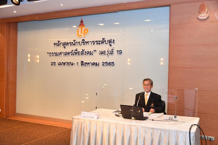 สำหรับหลักสูตรนักบริหารระดับสูงธรรมศาสตร์เพื่อสังคม รุ่นที่ 19 จัดโดยมูลนิธิสถาบันวิทยาการธรรมศาสตร์  เพื่อสังคม โดยวัตถุประสงค์ที่มุ่งเน้นให้ผู้เข้าอบรมมีความรู้ ความเข้าใจ แนวความคิดและทิศทางใหม่ในการบริหารองค์กร ที่สอดคล้องกับสถานการณ์ในปัจจุบัน อีกทั้งยังเสริมสร้างความคิดในเรื่องความเป็นประชาธิปไตยและ การมีส่วนร่วมในการชี้นำ ป้องกันและแก้ไขปัญหาสังคม เปิดโอกาสในการแลกเปลี่ยนความรู้และประสบการณ์ระหว่างผู้เข้าอบรมและวิทยากรผู้ทรงคุณวุฒิ เพื่อเสริมสร้างเครือข่ายสัมพันธภาพระหว่างผู้เข้าอบรม อันจะนำไปสู่การร่วมมือกันในอนาคต เพื่อชุมชน สังคม มหาวิทยาลัยธรรมศาสตร์และประเทศชาติ เสริมสร้างจิตสาธารณะและความรับผิดชอบต่อสังคม ตลอดจนสืบทอดอุดมการณ์เพื่อสังคมของมหาวิทยาลัยธรรมศาสตร์ต่อไป