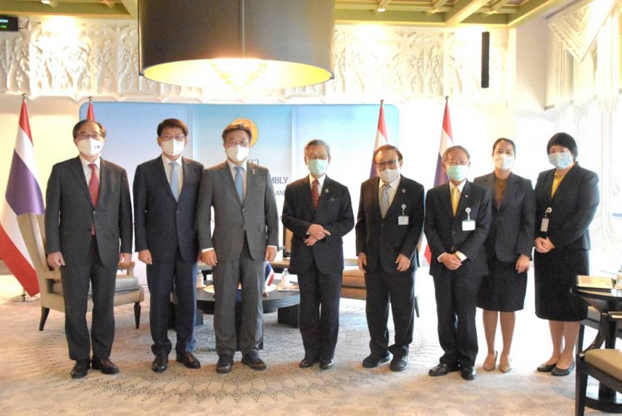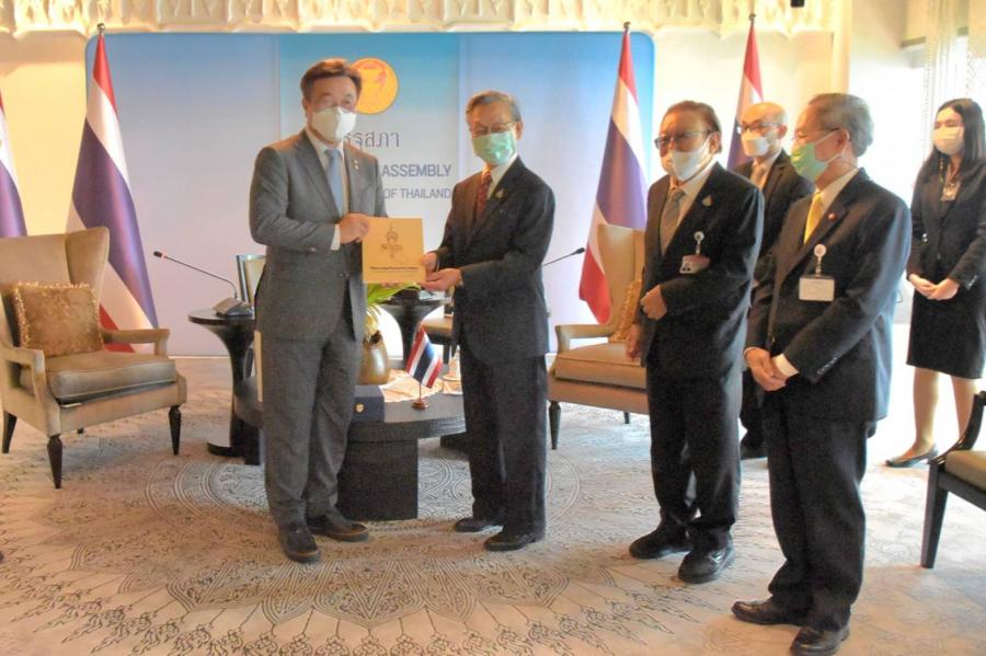 ทั้งนี้ นายชวน หลีกภัย ประธานรัฐสภาและประธานสภาผู้แทนราษฎร กล่าวแสดงความยินดีที่เกาหลีมีประธานรัฐสภาคนใหม่ โดยไทยกับเกาหลีนั้นมีความสัมพันธ์ที่แน่นแฟ้น ดังจะเห็นได้จากการที่ไทยส่งทหารไปร่วมรบในสงครามเกาหลี มีการสร้างอนุสรณ์สถานทหารผ่านศึกและศาลาไทยที่เมืองโพชอน นับเป็นความร่วมมือระหว่างสองประเทศอย่างดี พร้อมกล่าวถึงโครงการแซมาอึล อุนดง (Saemaul Undong) ซึ่งเป็นโครงการพัฒนาชุมชนให้เข้มแข็งของเกาหลี ที่สามารถพลิกโฉมเป็นประเทศอุตสาหกรรมได้สำเร็จ นอกจากนี้ ยังได้เชิญผู้นำรัฐสภาเกาหลีเดินทางมาร่วมประชุมประจำปีรัฐสภาภาคพื้นเอเชียและแปซิฟิก  (APPF) ครั้งที่ 30 ที่รัฐสภาไทยจะเป็นเจ้าภาพในเดือน ต.ค. 65