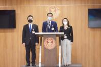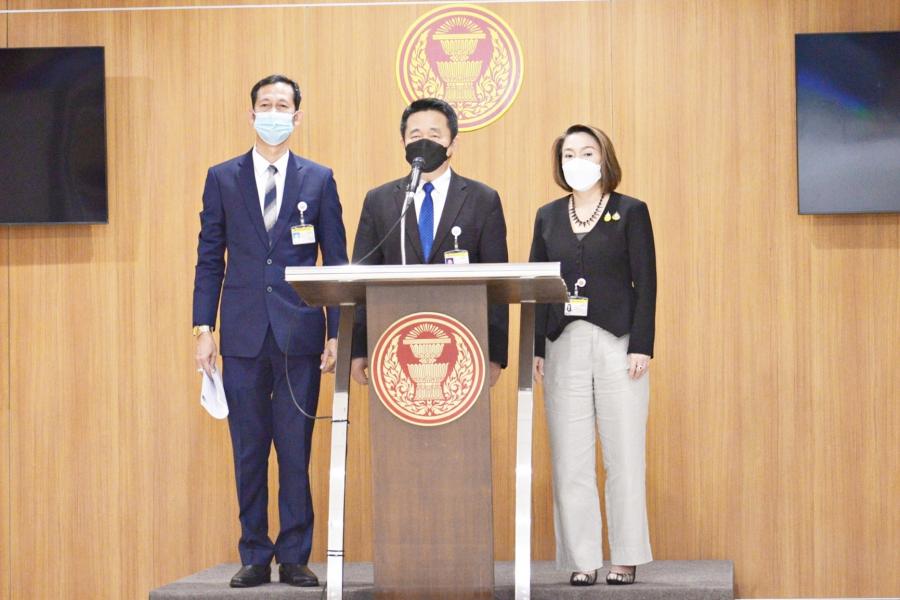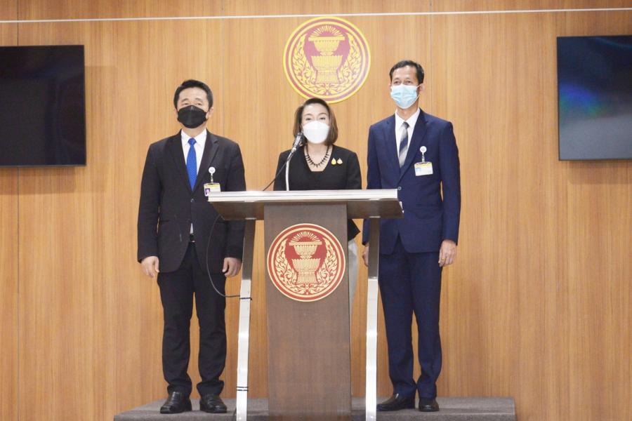 นางกรณิศ งามสุคนธ์รัตนา นายบัญญัติ เจตนจันทร์ และนายสัณหพจน์ สุขศรีเมือง โฆษกคณะ กมธ.วิสามัญพิจารณาร่าง พ.ร.บ.งบประมาณรายจ่ายประจำปีงบประมาณ พ.ศ. 2566 แถลงข่าวความคืบหน้าการพิจารณาร่าง พ.ร.บ. งบประมาณฯ