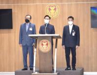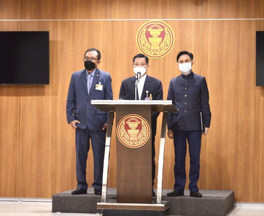 นายศุภชัย ใจสมุทร ประธานคณะ กมธ.วิสามัญพิจารณาร่าง พ.ร.บ.กัญชา กัญชง พ.ศ. .... นายปานเทพ พัวพงษ์พันธ์ โฆษกคณะ กมธ. และนายเทวัญ ธานีรัตน์ เลขานุการคณะ กมธ. แถลงข่าวเกี่ยวกับการดำเนินงานของคณะ กมธ.