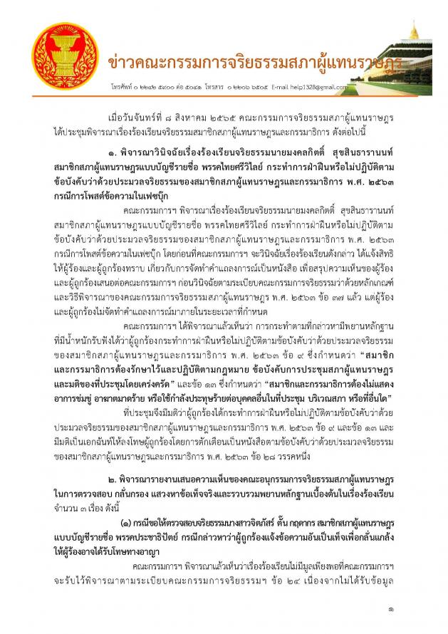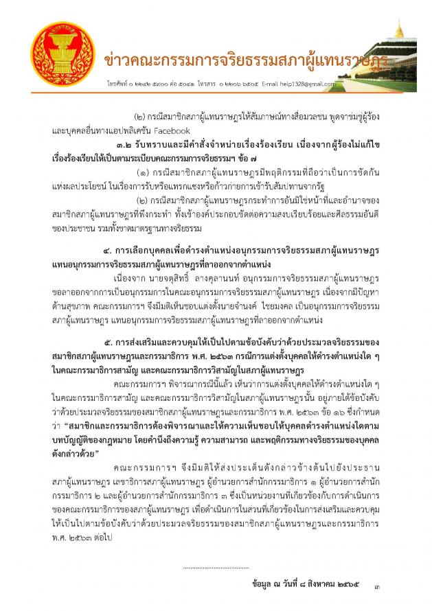 ประชุมคณะกรรมการจริยธรรมสภาผู้แทนราษฎร ครั้งที่ 4/2565