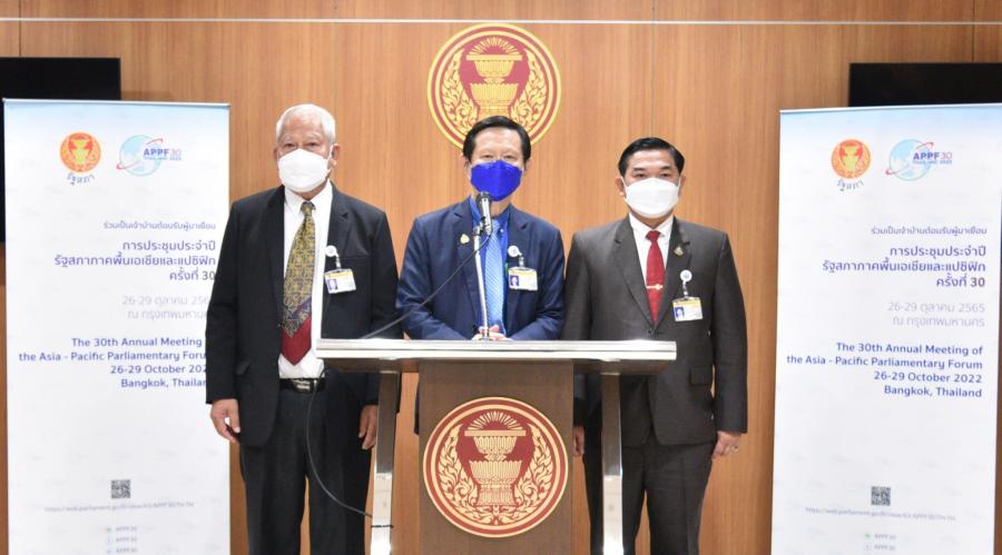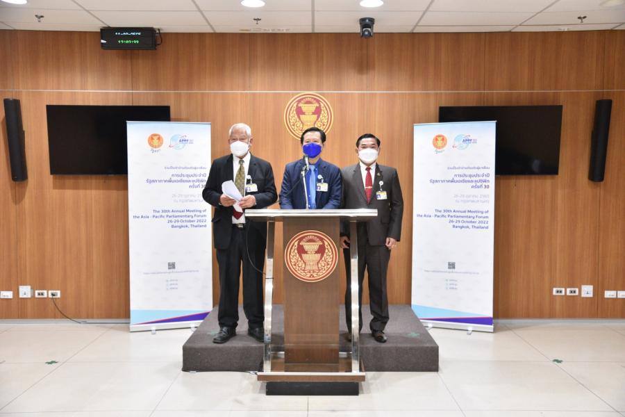 นายระวี มาศฉมาดล สมาชิกสภาผู้แทนราษฎร พรรคพลังธรรมใหม่ และนายปรีดา บุญเพลิง สมาชิกสภาผู้แทนราษฎร พรรคครูไทยเพื่อประชาชน และนายคฑาเทพ เตชะเดชเรืองกุล สมาชิกสภาผู้แทนราษฎร พรรคเพื่อชาติไทย ร่วมกันแถลงข่าว