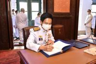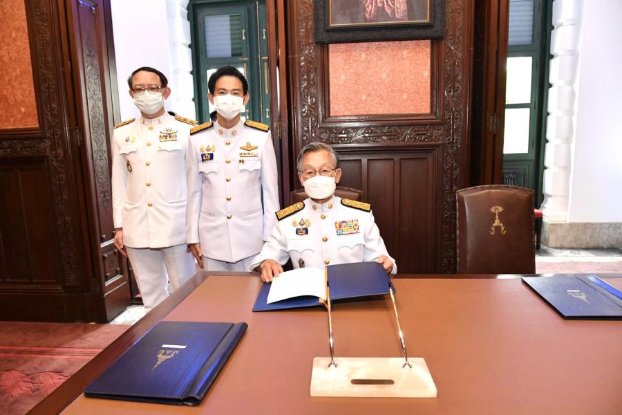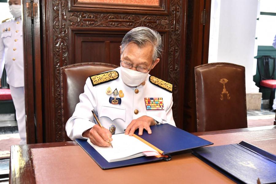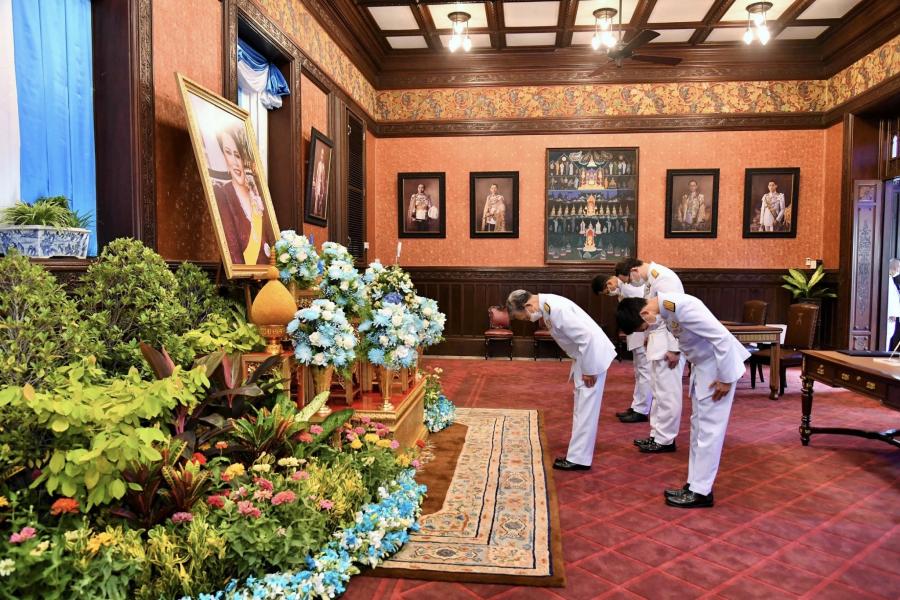 ประธานรัฐสภา ทูลเกล้าฯ ถวายแจกันดอกไม้เบื้องหน้าพระบรมฉายาลักษณ์ สมเด็จพระนางเจ้าสิริกิติ์ พระบรมราชินีนาถ พระบรมราชชนนีพันปีหลวง พร้อมร่วมลงนามถวายพระพร ณ ห้องแดง อาคารหน่วยราชการในพระองค์ 904 ในพระบรมมหาราชวัง