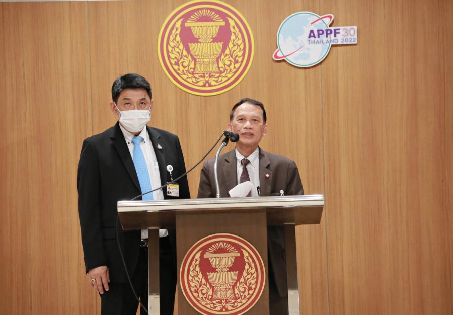 ศ.โกวิทย์ พวงงาม ส.ส.พรรคพลังท้องถิ่นไท และนายสฤษฏ์พงษ์ เกี่ยวข้อง ส.ส.พรรคภูมิใจไทย แถลงข่าว