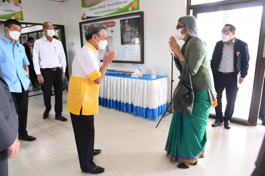 ทั้งนี้ ประธานรัฐสภา ได้กล่าวต้อนรับเอกอัครราชทูตฯ สู่จังหวัดตรัง ซึ่งเป็นจังหวัดที่มีความภาคภูมิใจในประวัติศาสตร์และภูมิศาสตร์ พร้อมทิวทัศน์อันงดงาม โดยกว่า 100 ปี มิชชันนารีชาวอเมริกันกลุ่มหนึ่งเดินทางมาประเทศไทยเพื่อเผยแผ่ศาสนาคริสต์ และภรรยาคนหนึ่งได้เขียนไว้ในไดอารี่ว่า "ตรังเป็นจังหวัดที่สวยที่สุดในสยาม" (ประเทศไทย) และตนรู้สึกซาบซึ้งที่เอกอัครราชทูตฯ สละเวลามารับต้นกล้าสะเดาอินเดียที่เติบโตจากเมล็ดซึ่งเอกอัครราชทูตฯ ได้มอบให้ตนเมื่อปีที่แล้ว โดยเป็นไม้สะเดาที่ให้ผลที่แข็งแรงและมีใบที่สวยงาม และในวันนี้เราจะร่วมกันปลูกต้นสะเดาอินเดีย เพื่อเป็นสัญลักษณ์แห่งความสัมพันธ์ระหว่างอินเดีย - ไทย และตนจะพยายามแจกจ่ายเมล็ดพันธุ์ของต้นไม้เหล่านี้ไปยังจังหวัดต่าง ๆ เพื่อส่งเสริมความหลากหลายทางชีวภาพของพืชในพื้นที่ต่าง ๆ ของประเทศ อย่างไรก็ตาม ต้นไม้ต้องใช้เวลาในการเจริญเติบโต แต่เมื่อโตขึ้น ต้นไม้จะมีประโยชน์และสวยงาม เพราะสีเขียวเป็นสีที่ใช้เพื่อความสะอาดและการพัฒนาที่ยั่งยืน โดยตนนั้นรักต้นไม้ ดังที่ตนเคยกล่าวไว้ว่า "ต้นไม้เป็นส่วนหนึ่งของชีวิต ดังนั้นจึงต้องพึ่งพาอาศัยกัน" เช่น ประเทศไทยและอินเดีย