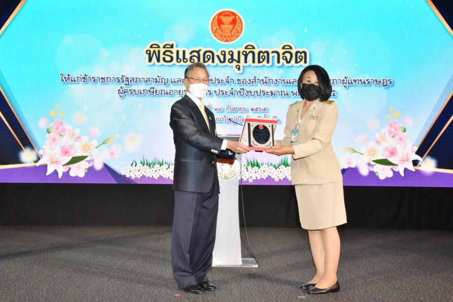 ประธานรัฐสภา เป็นประธานในพิธีแสดงมุทิตาจิตแก่ข้าราชการรัฐสภาสามัญ ลูกจ้างประจำ ผู้เกษียณอายุราชการ ประจำปีงบประมาณ 2565