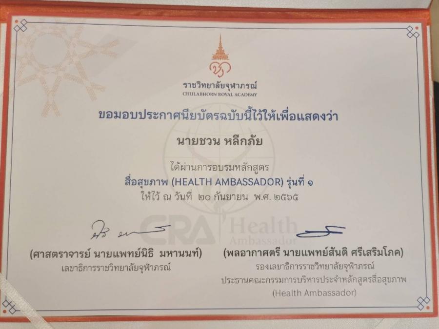 ประธานรัฐสภา เข้ารับพระราชทานเข็มวิทยฐานะและประประกาศนียบัตรสำหรับผู้ผ่านการอบรมหลักสูตรสื่อสุขภาพ (Health Ambassador) รุ่นที่ 1