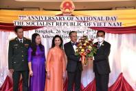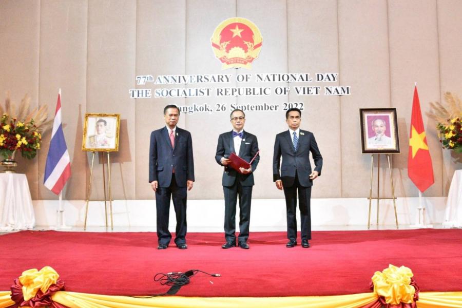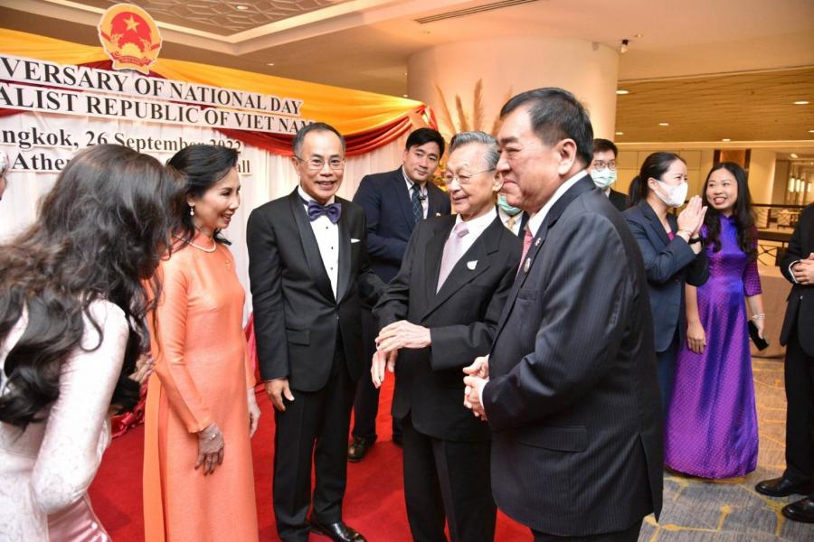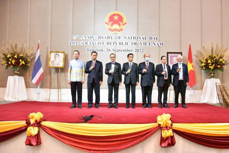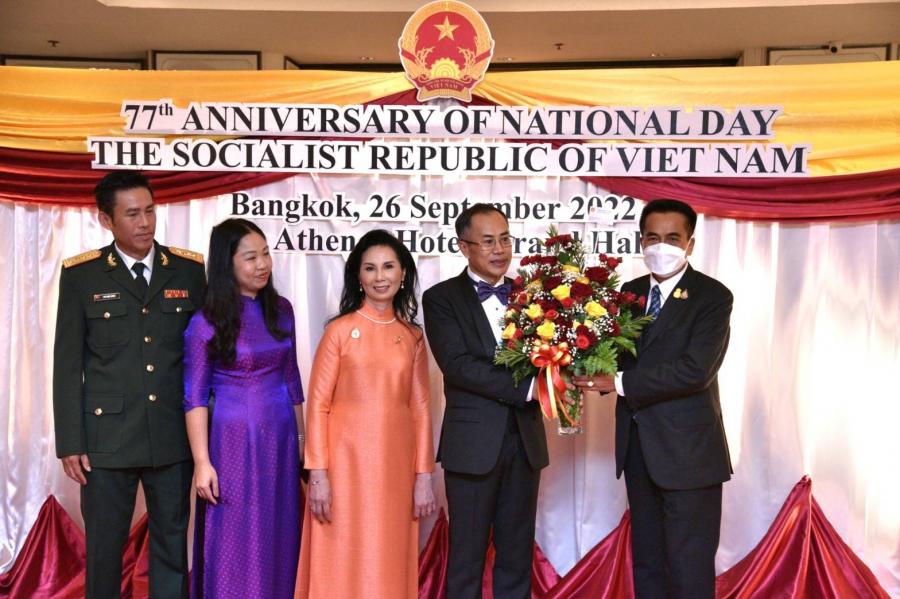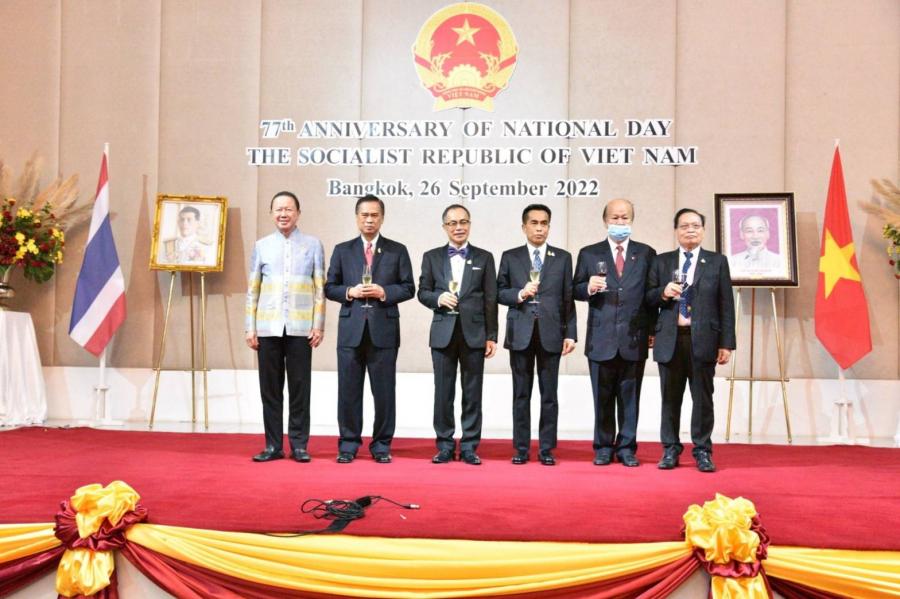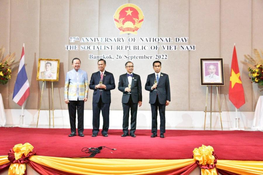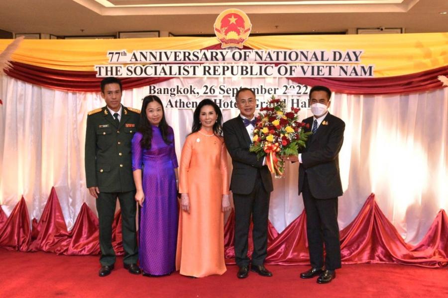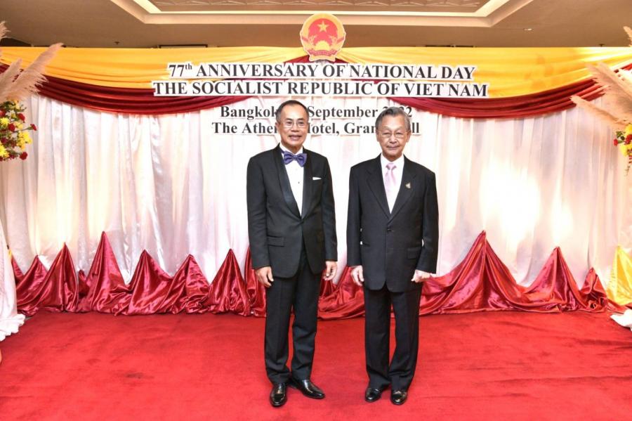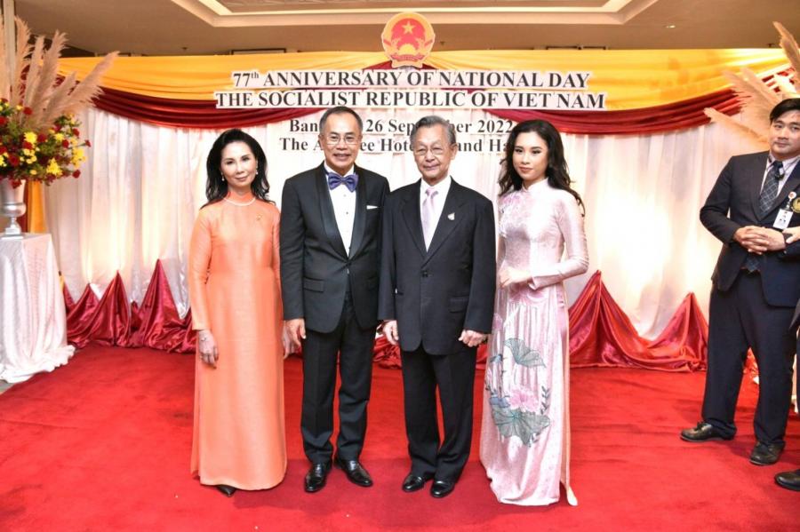 เมื่อวันที่ 26 ก.ย. 65 เวลา 18.30 น. ณ ห้องแกรนด์ฮอลล์ โรงแรมดิ แอทธินี โฮเต็ล แบงค็อก นายชวน หลีกภัย ประธานรัฐสภาและประธานสภาผู้แทนราษฎร และ นายศุภชัย โพธิ์สุ รองประธานสภาผู้แทนราษฎร คนที่สอง เข้าร่วมงานฉลองครบรอบ 77 ปี วันชาติสาธารณรัฐสังคมนิยมเวียดนาม โดยนายฟาน จี๊ ทัญ (H.E. Mr. Phan Chi Thanh) เอกอัครราชทูตสาธารณรัฐสังคมนิยมเวียดนามประจำประเทศไทย และนางฟาน ถิ เฮียน อัย (Mrs. Phan Thi Hien Anh) ภริยา ให้การต้อนรับ