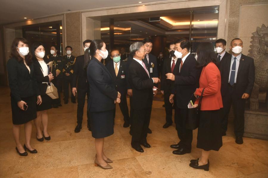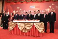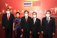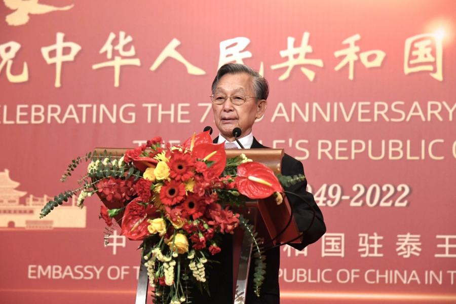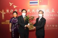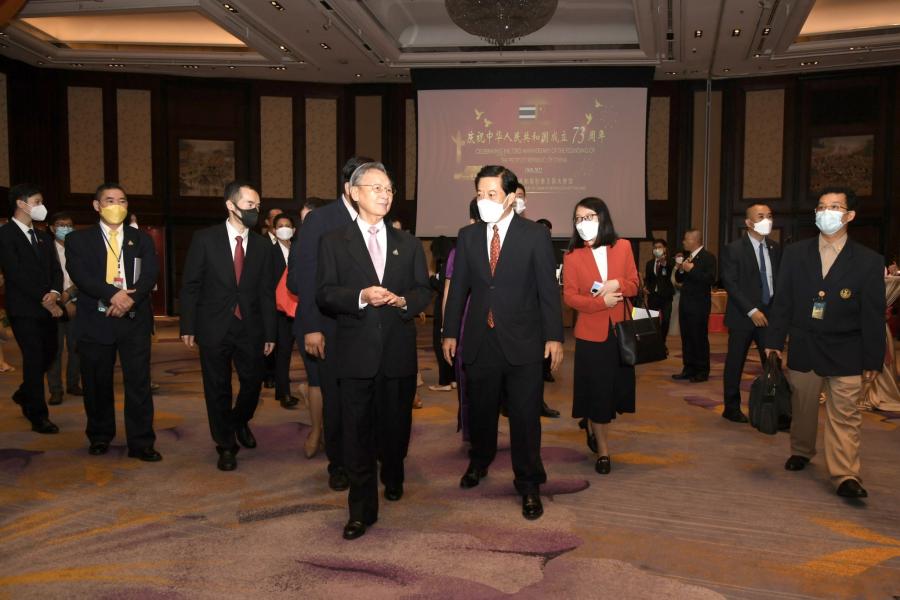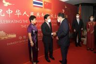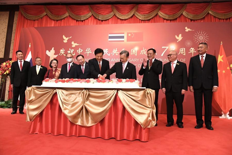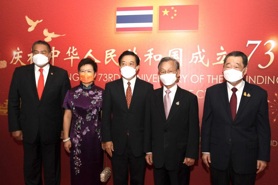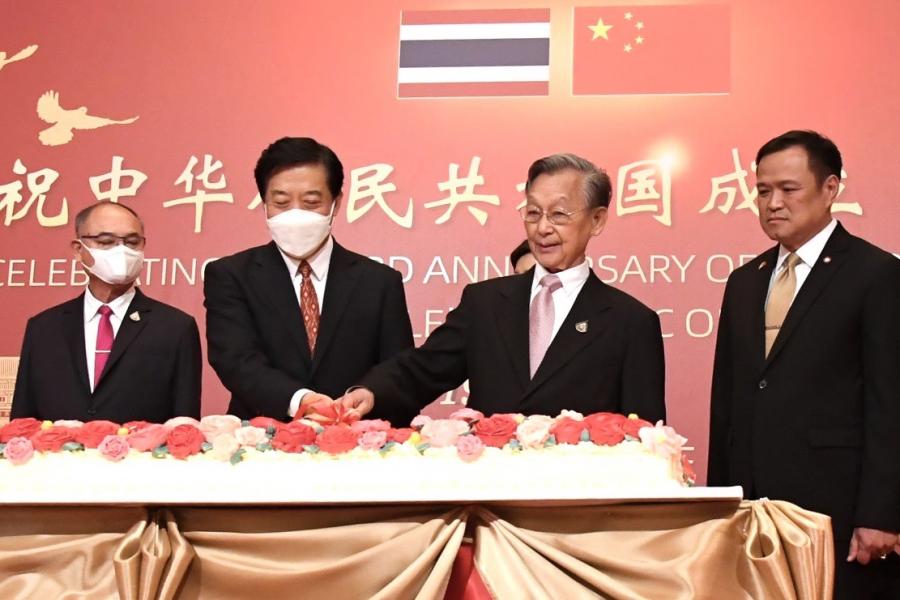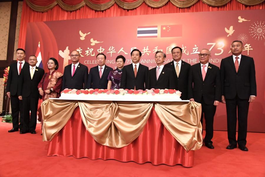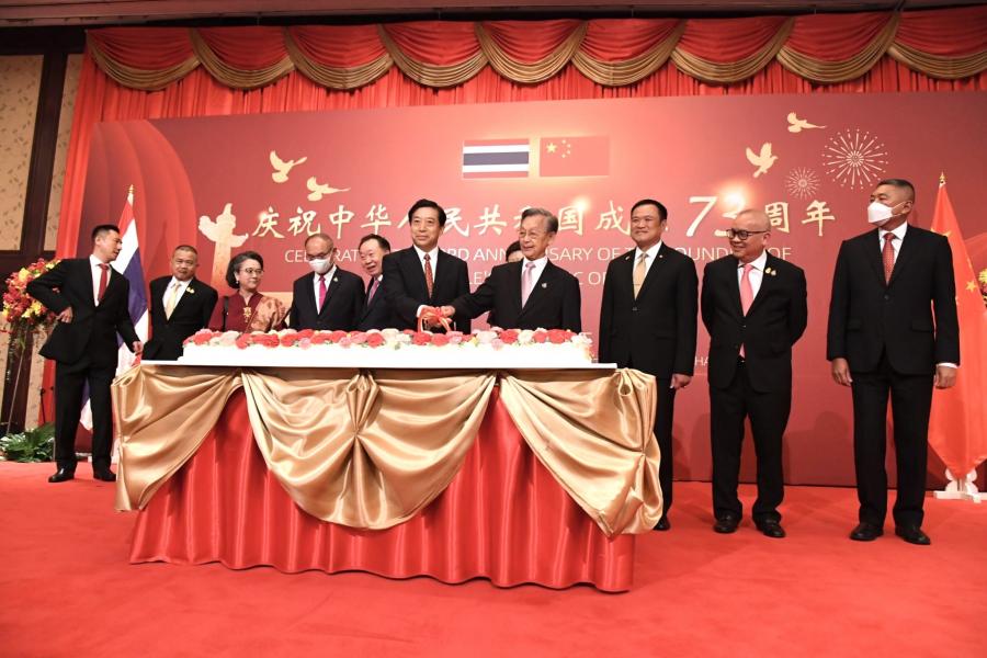 เมื่อวันจันทร์ที่ 26 กันยายน 2565 เวลา 18.30 นาฬิกา นายชวน หลีกภัย ประธานรัฐสภาและประธานสภาผู้แทนราษฎร พร้อมด้วยนายชลน่าน ศรีแก้ว ผู้นำฝ่ายค้านในสภาผู้แทนราษฎร นายสุชาติ ตันเจริญ รองประธานสภาผู้แทนราษฎร คนที่หนึ่ง นายศุภชัย โพธิ์สุ รองประธานสภาผู้แทนราษฎร คนที่สอง และสมาชิกสภาผู้แทนราษฎร เข้าร่วมงานเลี้ยงเฉลิมฉลองเนื่องในโอกาสครบรอบ 73 ปี วันชาติสาธารณรัฐประชาชนจีน ณ โรงแรมแชงกรี-ล่า กรุงเทพฯ ในโอกาสสำคัญนี้ ประธานรัฐสภาและประธานสภาผู้แทนราษฎร รองประธานสภาผู้แทนราษฎร คนที่หนึ่ง และรองประธานสภาผู้แทนราษฎร คนที่สอง ได้มอบแจกันดอกไม้ให้กับ H.E. Mr. Han Zhiqiang (นายหาน จื้อเฉียง) เอกอัครราชทูตสาธารณรัฐประชาชนจีนประจำประเทศไทย โดยนายชวน หลีกภัย ได้กล่าวแสดงความยินดีบนเวที พร้อมนี้ได้กล่าวถึงความสัมพันธ์อันดีงามของไทย-จีน รวมถึงขอบคุณที่จีนสนับสนุนวัคซีนป้องกันโรค และในฐานะฝ่ายนิติบัญญัติหวังว่าจะได้ทำงานใกล้ชิดกับเอกอัครราชทูตฯ เพื่อส่งเสริมความสัมพันธ์ระหว่างรัฐและประชาชนของทั้งสองประเทศให้มั่นคงและยั่งยืนตลอดไป