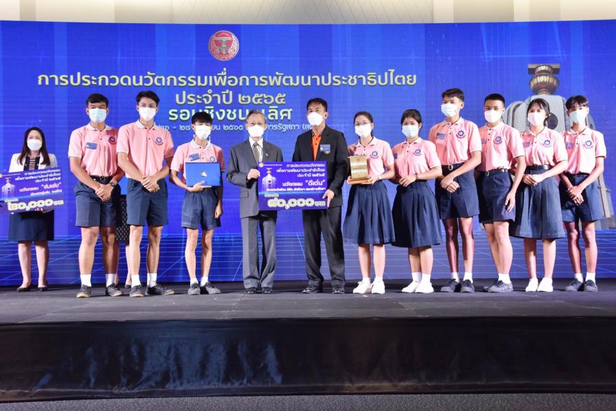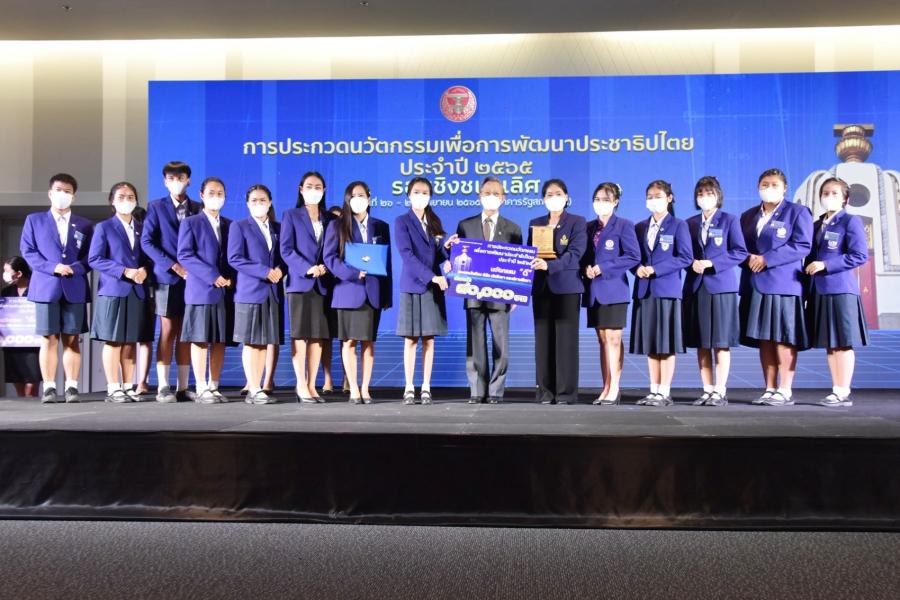 จากนั้น เป็นการมอบรางวัล โดยรางวัลนวัตกรรมเพื่อการพัฒนาประชาธิปไตย แบ่งเป็น 2 ประเภท ได้แก่ 1. ประเภทนักเรียน นิสิต นักศึกษา และสถานศึกษา มีผลงานนวัตกรรมเพื่อการพัฒนาประชาธิปไตยผลงานนวัตกรรมเพื่อการพัฒนาโดยมีผู้ได้รับรางวัลนวัตกรรม ประกอบด้วย รางวัลระดับดีเด่น รางวัลระดับดีมาก รางวัลระดับดี และรางวัลระดับชมเชย ดังนี้ รางวัลนวัตกรรมประชาธิปไตย "ดีเด่น" ได้รับโล่รางวัล และเกียรติบัตรของประธานสภาผู้แทนราษฎร พร้อมทั้งเงินรางวัล 80,000 บาท ได้แก่ ผลงาน : เรียนรู้รากเหง้าเข้าใจวิถีประชาธิปไตยแบบพอเพียง ทีม : จิตอาสาพัฒนาประชาธิปไตย โรงเรียนศรีหนองกาววิทยา จ.ขอนแก่น