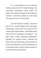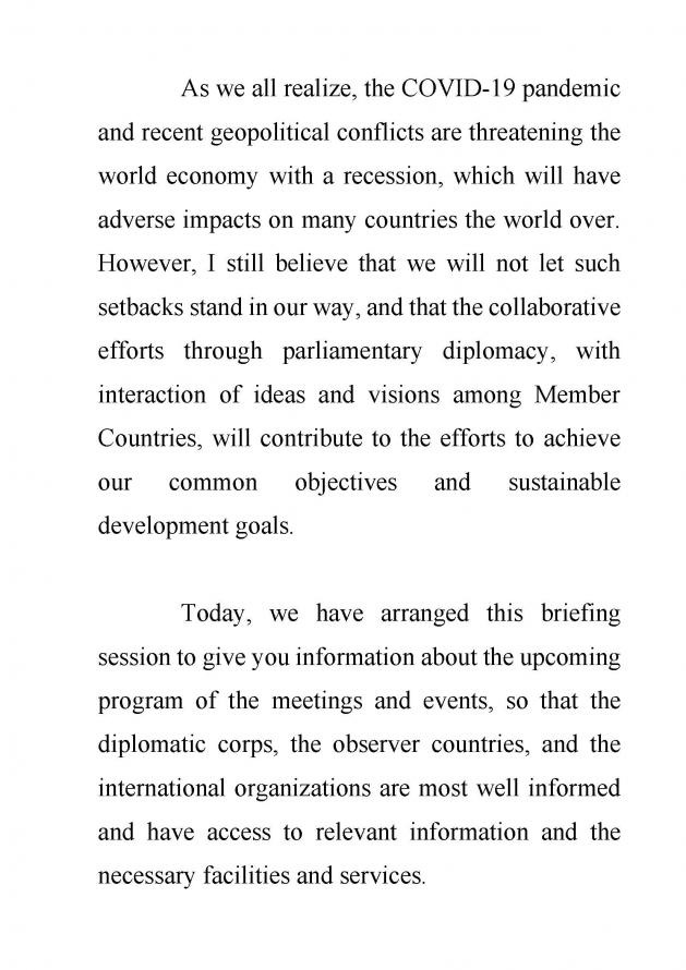 ประธานรัฐสภา เป็นประธานในการแถลงข่าวแก่คณะทูตานุทูตในโอกาสการเป็นเจ้าภาพการประชุมประจำปีรัฐสภาภาคพื้นเอเชียและแปซิฟิก ครั้งที่ 30
