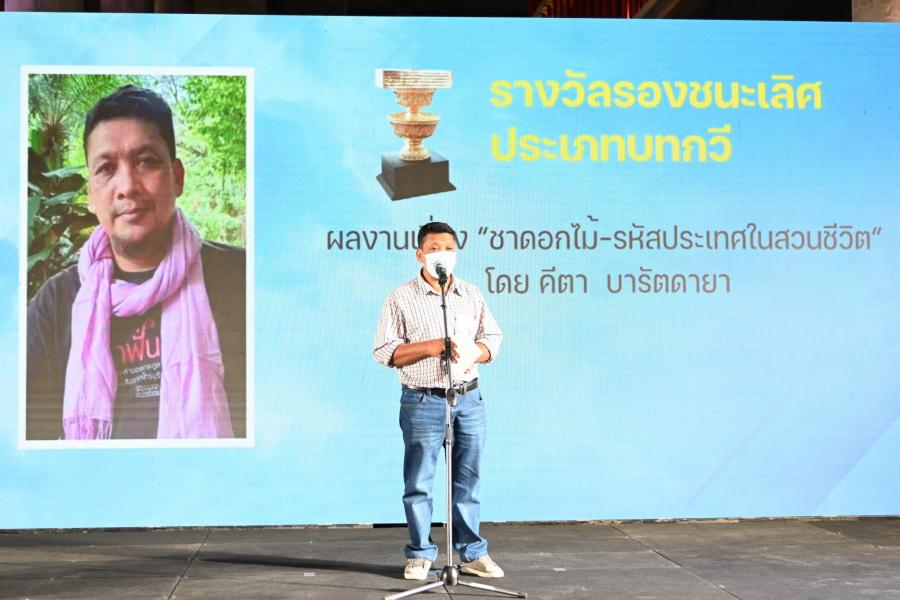 สำหรับกิจกรรม "แรงบันดาลใจนักเขียน รางวัลพานแว่นฟ้า ปี 2565" เป็นการกล่าวถึงที่มาและแรงบันดาลใจในการสร้างสรรค์ผลงาน โดยนักเขียนผู้ที่ได้รับรางวัลชนะเลิศ และรองชนะเลิศ ประเภทบทกวีและเรื่องสั้น ปี 2565 ดังนี้ 1. น.ส.ณัฏฐ์ธีรตา วิทิตวิญญูชน หรือ วิญวิญญ์ นักเขียนที่ได้รับรางวัลชนะเลิศ ประเภทเรื่องสั้น ผลงานเรื่อง "ความกระจ่างที่ระยะทาง 41,157 กิโลเมตร" 2. นายอุเทน พรมแดง นักเขียนที่ได้รับรางวัลรองชนะเลิศ ประเภทเรื่องสั้น ผลงานเรื่อง "คนหนึ่งยืน คนอื่นนั่ง" 3. นายอินทร อรพัน นักเขียนที่ได้รับรางวัลรองชนะเลิศ ประเภทเรื่องสั้น ผลงานเรื่อง "มูลไส้เดือน" 4. นายอร่าม อินพุ่ม นักเขียนที่ได้รับรางวัลชนะเลิศ ประเภทบทกวี ผลงานเรื่อง "ผีถ้วยแก้ว" 5. นายวิสุทธิ์ ขาวเนียม หรือ คีตา บารัตดายา นักเขียนที่ได้รับรางวัลรองชนะเลิศ ประเภทบทกวี ผลงานเรื่อง "ชาดอกไม้-รหัสประเทศในสวนชีวิต" 6. นายอภิชาติ ดำดี นักเขียนที่ได้รับรางวัลรองชนะเลิศ ประเภทบทกวี ผลงานเรื่อง "เธอกับฉันนั้นคือเรา"