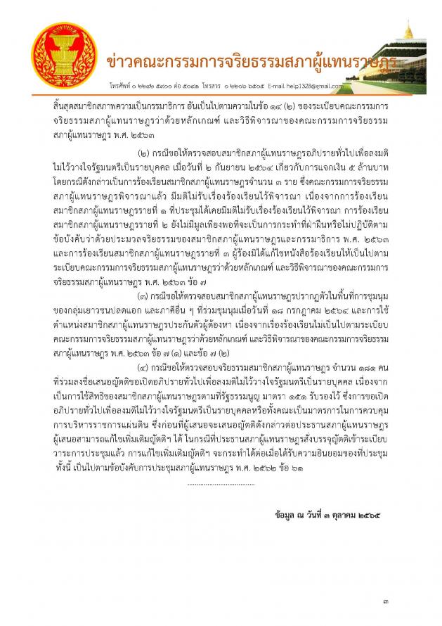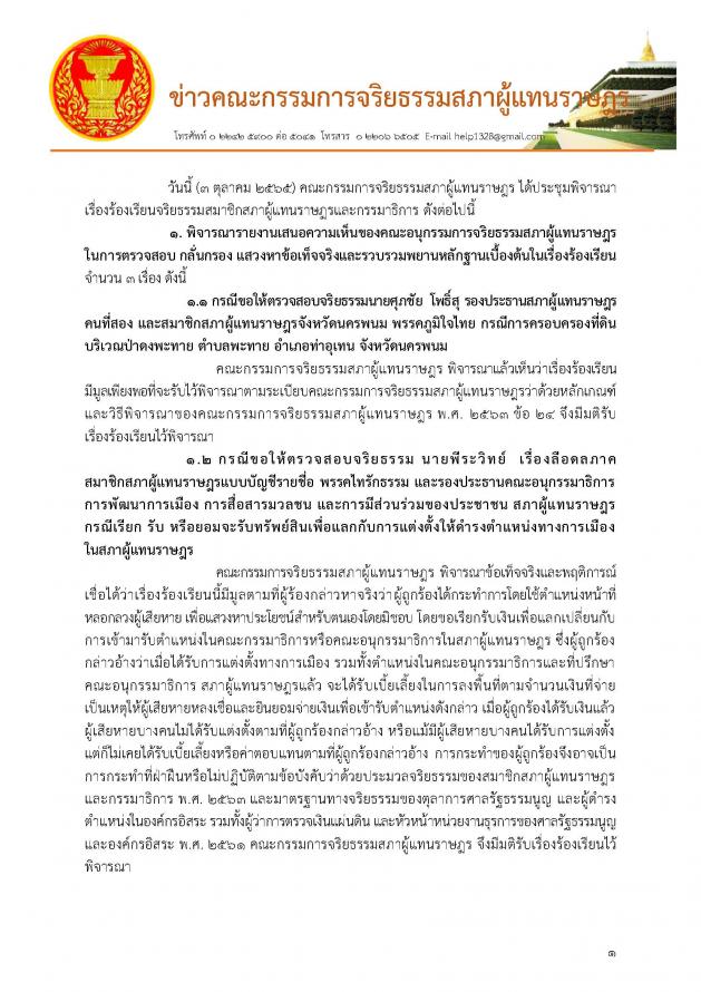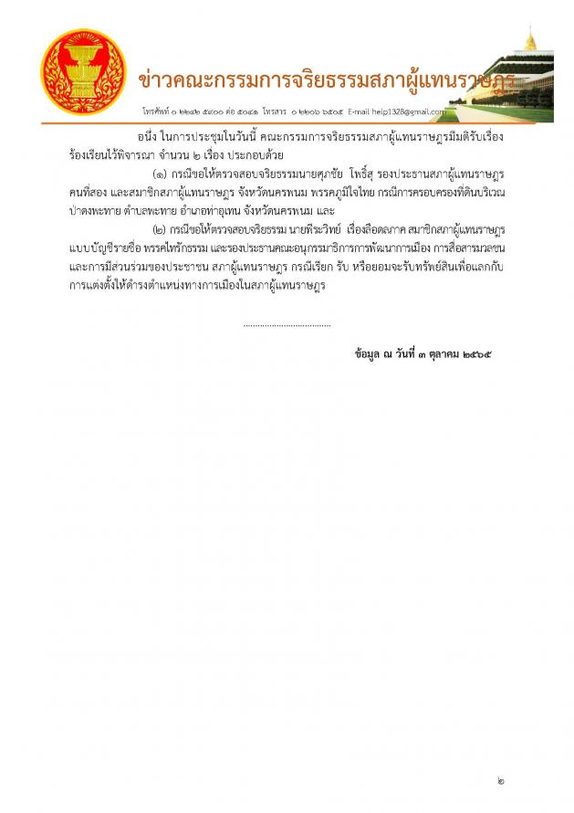 ประชุมคณะกรรมการจริยธรรมสภาผู้แทนราษฎร ครั้งที่ 5/2565