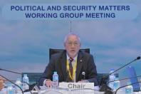 นายเกียรติ สิทธีอมร ในฐานะผู้แทนรัฐสภาไทย ทำหน้าที่ประธานในที่ประชุมคณะทำงานด้านการเมือง และความมั่นคง