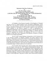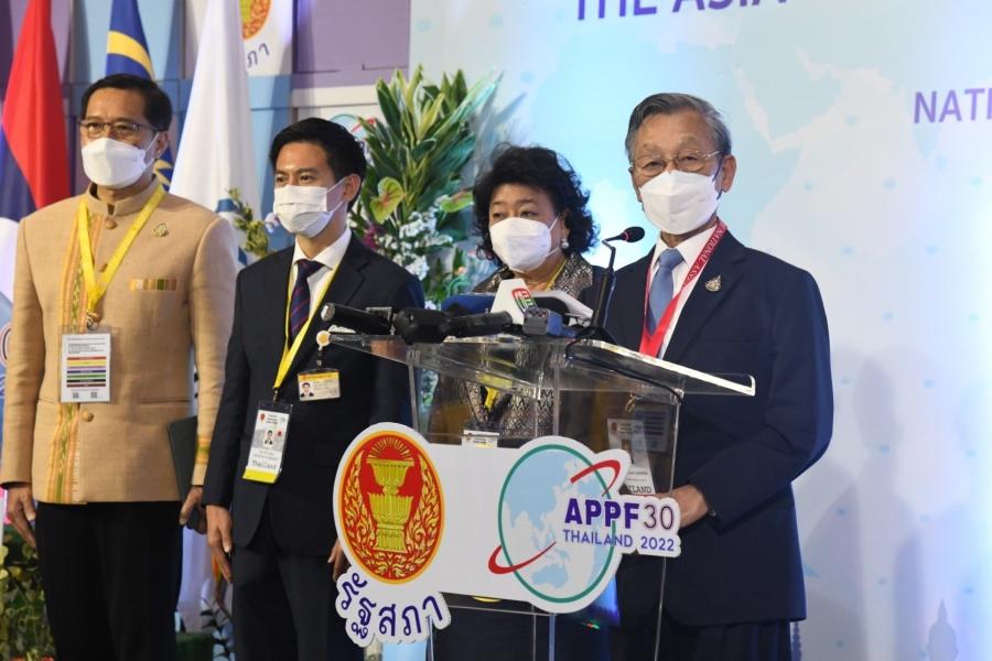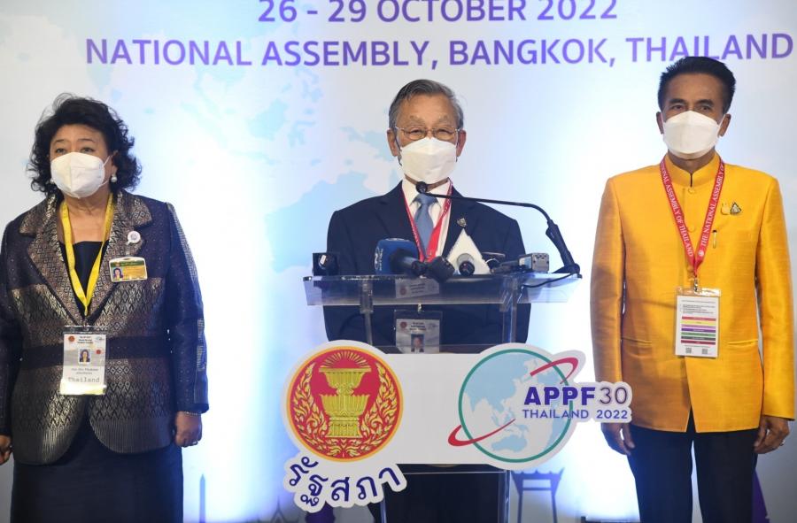 ประธานรัฐสภา ในฐานะประธานเจ้าภาพการประชุมประจำปีรัฐสภาภาคพื้นเอเชียและแปซิฟิก ครั้งที่ 30หรือ APPF ครั้งที่ 30 แถลงข่าวภายหลังพิธีเปิดการประชุมประชุมประจำปีรัฐสภาภาคพื้นเอเชียและแปซิฟิก ครั้งที่ 30