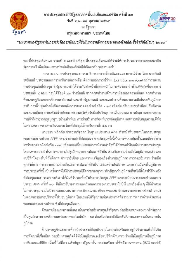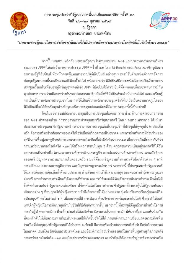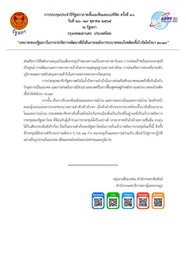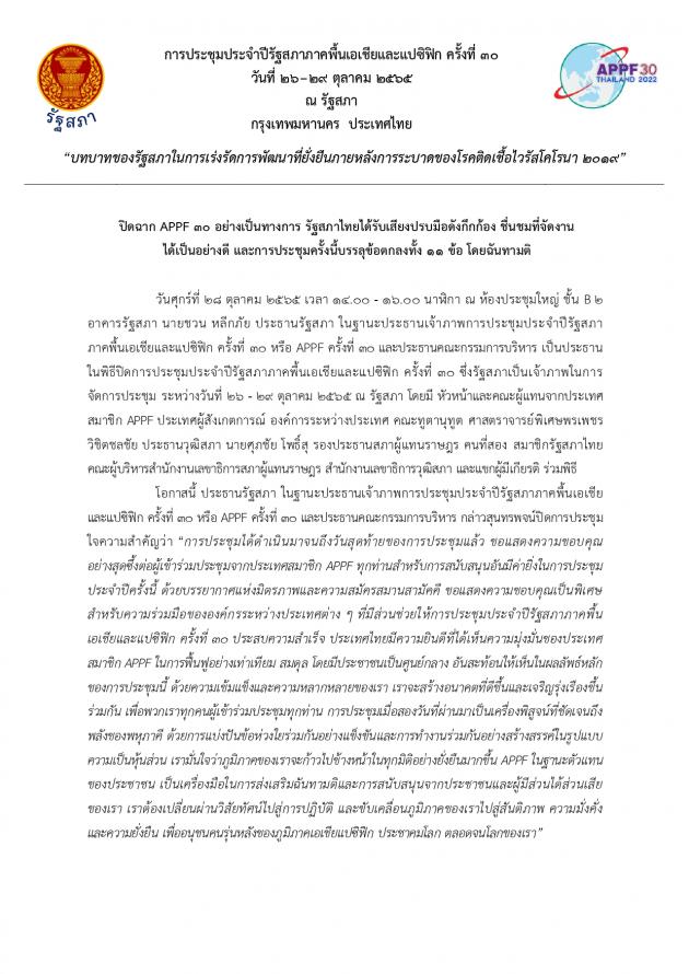 พิธีปิดการประชุมประจำปีรัฐสภาภาคพื้นเอเชียและแปซิฟิก ครั้งที่ 30 (ต่อ)