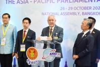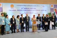 การแถลงข่าวภายหลังพิธีปิดการประชุมประจำปีรัฐสภาภาคพื้นเอเชียและแปซิฟิก ครั้งที่ ๓๐