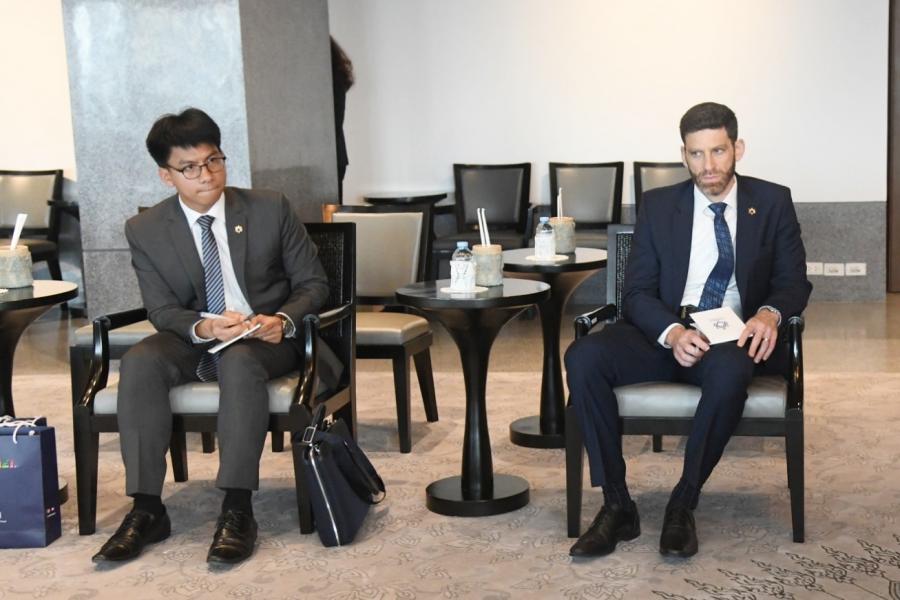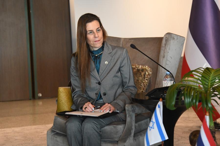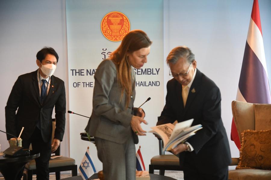 ด้านเอกอัครราชทูตฯ แสดงความขอบคุณที่ประธานรัฐสภาให้การต้อนรับอย่างอบอุ่น พร้อมทั้งแสดงความชื่นชมที่ได้พบกับประธานรัฐสภา ซึ่งเป็นบุคลที่ดำรงตำแหน่งสำคัญของประเทศมาแล้วหลายตำแหน่ง และได้ทุ่มเทชีวิตการทำงานให้กับประเทศมาอย่างยาวนาน ไทยและอิสราเอลต่างมีความสัมพันธ์ทางการทูตกันมาอย่างยาวนานและจะครบรอบ 70 ปี ในปี 2567 ซึ่งจะได้จัดกิจกรรมระหว่างกัน โดยจะขอเชิญประธานรัฐสภาเดินทางเยือนอิสราเอลด้วย นอกจากนี้แล้วทั้งสองประเทศยังมีความสัมพันธ์ครอบคลุมในทุกมิติ ทั้งด้านการเมือง เศรษฐกิจ สังคม การเกษตร แรงงาน และการท่องเที่ยว ซึ่งประเทศไทยเป็นแหล่งท่องเที่ยวที่สำคัญของนักท่องเที่ยวอิสราเอล สำหรับด้านการเกษตรนั้นอิสราเอลมีความก้าวหน้าทางเทคโนโลยีการเกษตรมาก โดยมีเป้าหมายคือสร้างความมั่นคงทางด้านอาหาร ด้านแรงงาน ซึ่งภาคการเกษตรของอิสราเอลมีแรงงานต่างชาติเพียงชาติเดียวคือแรงงานไทย มีจำนวนประมาณ 30,000 คน ทั้งนี้ รัฐบาลอิสราเอลได้ดูแลแรงงานไทยให้ได้รับค่าจ้าง สวัสดิการ และการคุ้มครองตามที่กฎหมายกำหนด นอกจากนี้ ยังได้ให้ทุนการศึกษาด้านการเกษตรหลักสูตร 1 ปี กับนักเรียนไทย โดยมุ่งเน้นที่ภาคปฏิบัติเป็นหลัก
