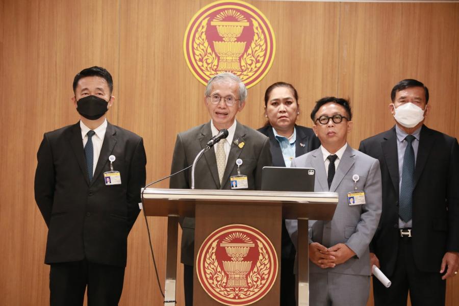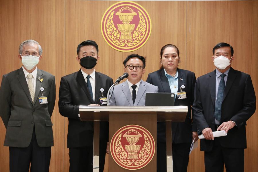 นายสาทิตย์ วงศ์หนองเตย นายพิสิฐ ลี้อาธรรม นายประกอบ รัตนพันธ์ นายบัญญัติ เจตนจันทร์ และน.ส.พิมพ์รพี พันธุ์วิชาติกุล แถลงข่าวเกี่ยวกับข้อเสนอ 13 ข้อ ในการแก้ไขปรับปรุงร่าง พ.ร.บ.กัญชา กัญชง พ.ศ. .... ของพรรคประชาธิปัตย์