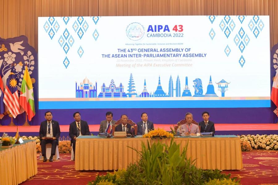 | เมื่ออาทิตย์วันที่ 20 พฤศจิกายน 2565 เวลา 20.00 นาฬิกา ณ ห้อง Ballroom III โรงแรม Sukha Phnom Penh นายชวน หลีกภัย ประธานรัฐสภาและประธานสภาผู้แทนราษฎร ในฐานะหัวหน้าคณะผู้แทนรัฐสภาไทย ได้เข้าร่วมการประชุมคณะกรรมการบริหาร AIPA พร้อมด้วย คณะผู้แทนรัฐสภาไทย ประกอบด้วย 1. นายชลน่าน ศรีแก้ว ผู้นำฝ่ายค้านในสภาผู้แทนราษฎร 2. ศาสตราจารย์พิเศษกาญจนารัตน์ ลีวิโรจน์ สมาชิกวุฒิสภา 3. นายอิสระ เสรีวัฒนวุฒิ สมาชิกสภาผู้แทนราษฎร ที่ประชุมได้แต่งตั้งให้นายชวน หลีกภัย ประธานรัฐสภาและประธานสภาผู้แทนราษฎร เป็นรองประธานการประชุม