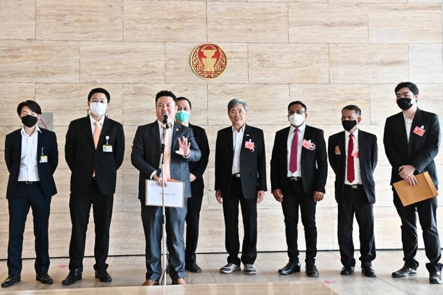 นายสุรเชษฐ์ ประวีณวงศ์วุฒิ ส.ส.พรรคก้าวไกล และคณะ รับหนังสือจากนายสิรภพ พิชัยรัตนพงษ์ เลขาธิการสหพันธ์การขนส่งทางบกแห่งประเทศไทย เพื่อเชิญเข้าร่วมงานเสวนาวิชาการ หัวข้อ "อิทธิพล ส่วยรถบรรทุกกับการคอร์รัปชัน" ในวันที่ 9 ธ.ค. 65 เวลา 08.00 - 13.00 นาฬิกา ณ โรงแรมรามาการ์เด้นส์ ถ.วิภาวดีรังสิต กรุงเทพฯ