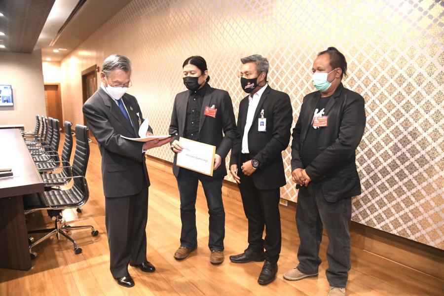 ประธานสภาผู้แทนราษฎร รับยื่นหนังสือจากนายคฑาวุธ ทองไทย หรือ อาจารย์ไข่ มาลีฮวนน่า ผู้ประสานงานเสนอกฎหมาย กับคณะ เรื่อง ขอริเริ่มเสนอร่างพระราชบัญญัติสภาศิลปะศิลปินและวัฒนธรรมแห่งชาติ พ.ศ. .... พร้อมรายชื่อผู้ริเริ่มเสนอกฎหมายจำนวน 28 รายชื่อ