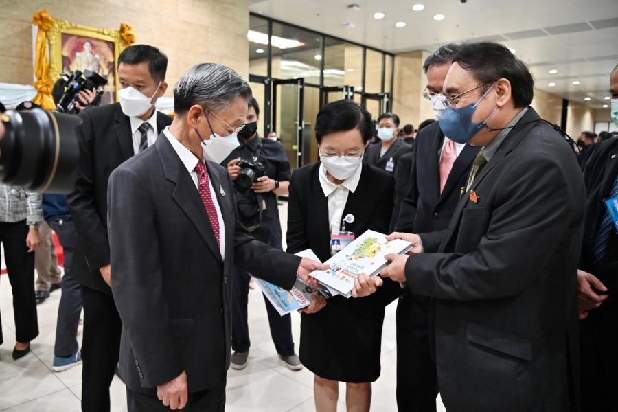 จากนั้น ประธานรัฐสภา พร้อมด้วยคณะเยี่ยมชมบูธกิจกรรมภาคีเครือข่าย อาทิ สำนักงานสนับสนุนส่งเสริมสุขภาพ  สำนักงานเครือข่ายลดอุบัติเหตุ  เครือข่ายงดเหล้า