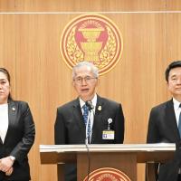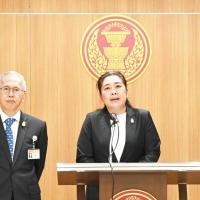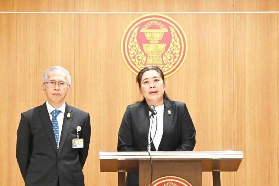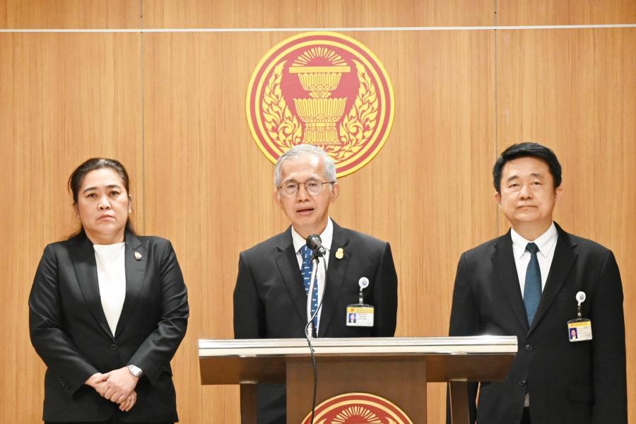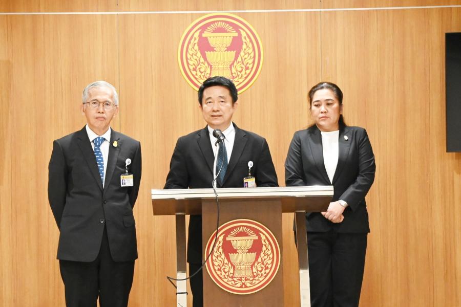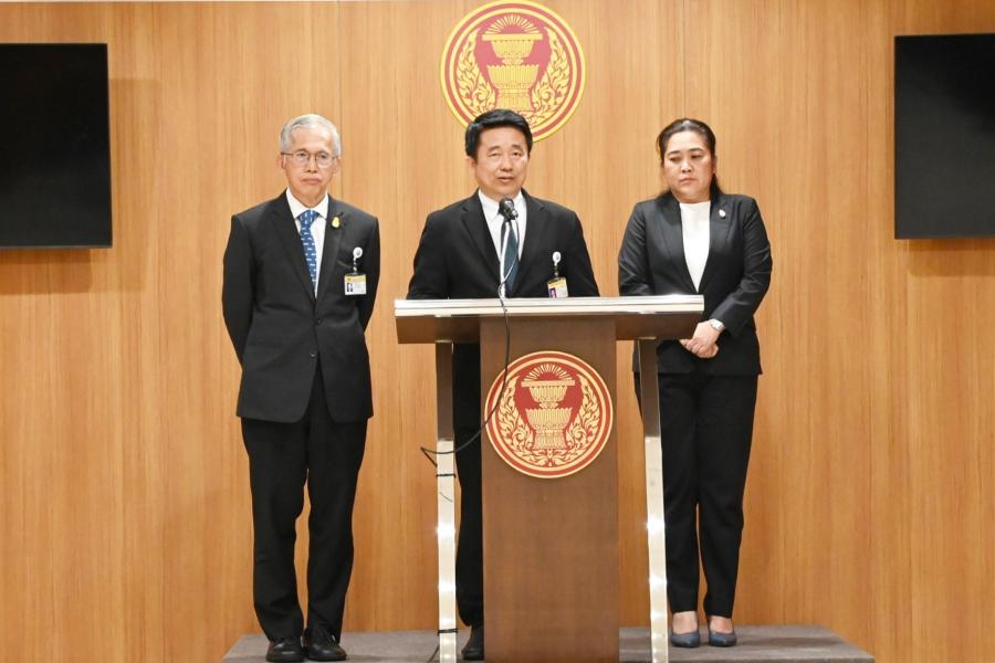 ส.ส.พรรคประชาธิปัตย์ แถลงข่าวเกี่ยวกับการประชุมสภาผู้แทนราษฎรในวันนี้ที่มีการพิจารณาร่าง พ.ร.บ.กองทุนบำเหน็จบำนาญข้าราชการ (ฉบับที่ ..) พ.ศ. ....
