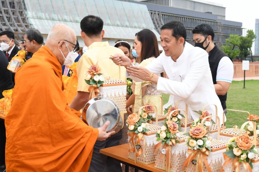 ประธานรัฐสภาและประธานสภาผู้แทนราษฎร เป็นประธานในพิธีทำบุญตักบาตรสืบสานประเพณีวันขึ้นปีใหม่ (ปีเถาะ) พุทธศักราช 2566 แด่พระสงฆ์ จำนวน 99 รูป จากวัดในพระอารามหลวง 9 วัด