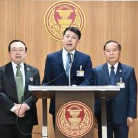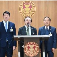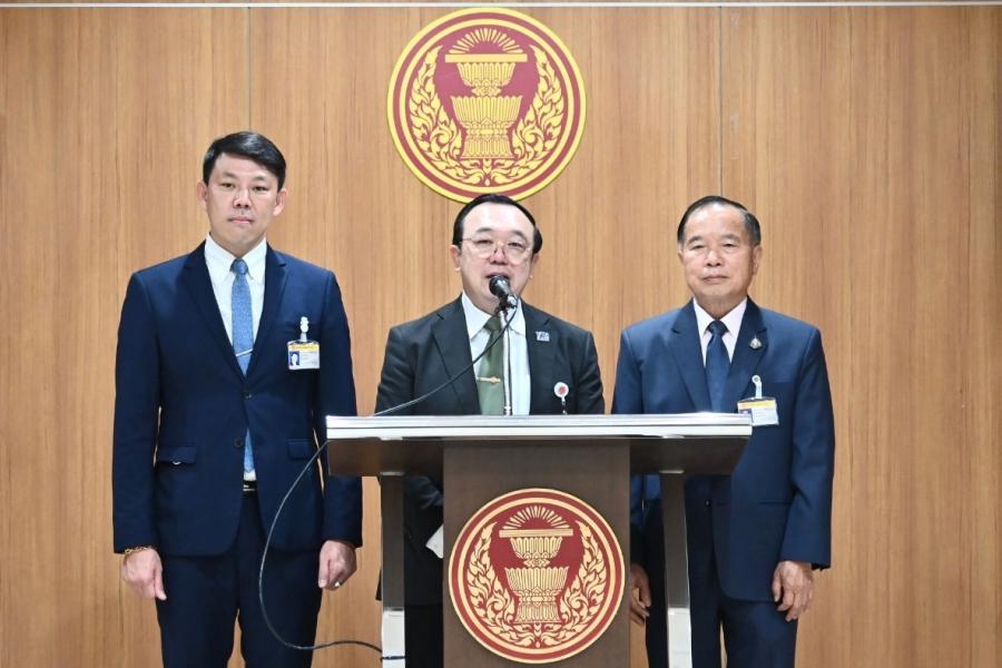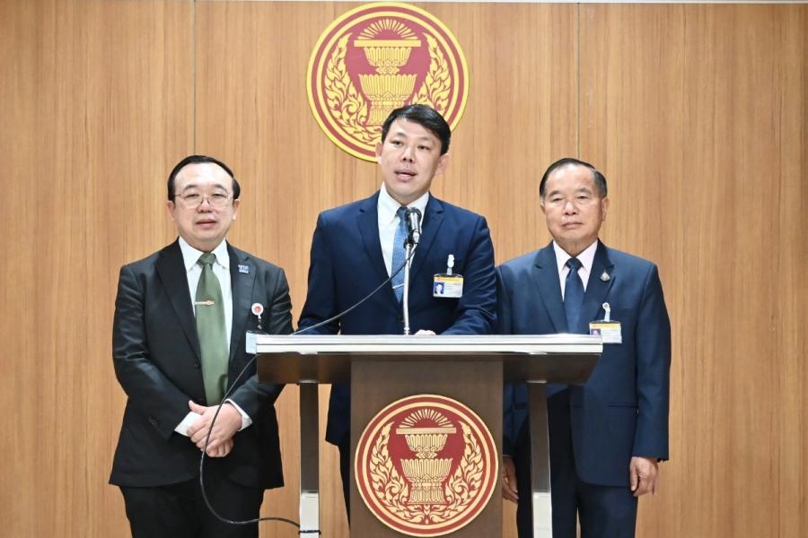 นายสุรวิทย์ คนสมบูรณ์ พร้อมด้วย นายกิตติศักดิ์ คณาสวัสดิ์ และนายโอชิษฐ์ เกียรติก้องชูชัย ส.ส. พรรรคเพื่อไทย ร่วมกันแถลงข่าว