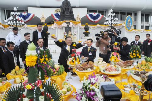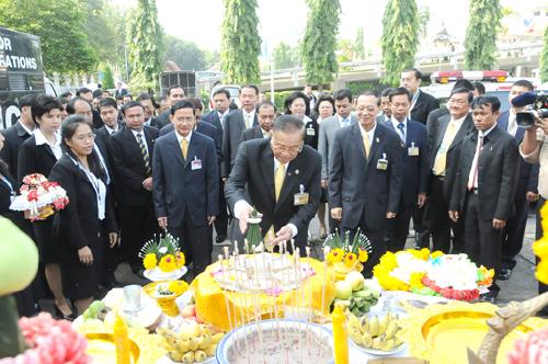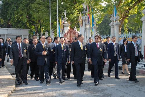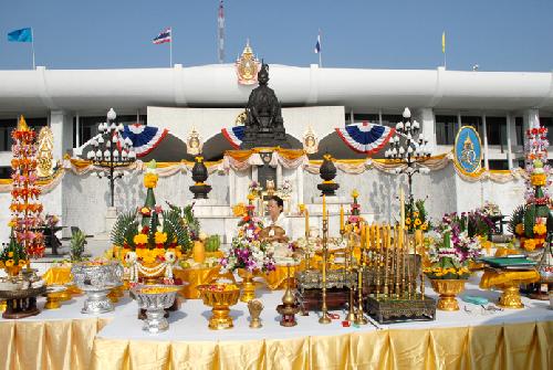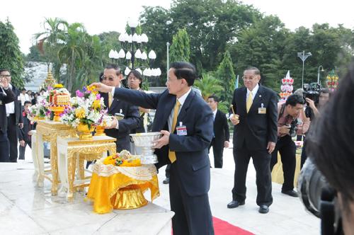 | วันจันทร์ที่ ๒๐ ตุลาคม ๒๕๕๑ เวลา ๐๗.๐๐ นาฬิกา นายชัย ชิดชอบ ประธานรัฐสภา และประธานสภาผู้แทนราษฎร และนายประสพสุข บุญเดช ประธานวุฒิสภา พร้อมด้วยนายสมชาย วงศ์สวัสดิ์ นายกรัฐมนตรี ร่วมเป็นประธานในพิธีบำเพ็ญกุศลอุทิศถวายแด่พระบาทสมเด็จพระปกเกล้าเจ้าอยู่หัว และสมเด็จพระนางเจ้ารำไพพรรณี ณ บริเวณห้องโถง ชั้นล่าง อาคารรัฐสภา ๑ จากนั้นในเวลา ๐๙.๑๙ นาฬิกา ณ บริเวณลานพระบรมราชานุสาวรีย์พระบาทสมเด็จพระปกเกล้าเจ้าอยู่หัว ได้ประกอบพิธีบวงสรวง และถวายพวงมาลัยสักการะพระบรมราชานุสาวรีย์พระบาทสมเด็จพระปกเกล้าเจ้าอยู่หัว พร้อมกันนี้ได้สักการะพระสยามเทวาธิราช พระเสื้อเมือง พระทรงเมืองและพระภูมิเจ้าที่ |