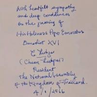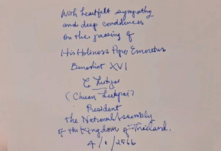 ประธานรัฐสภา ลงนามถวายความอาลัยต่อการสิ้นพระชนม์ของสมเด็จพระสันตะปาปากิตติคุณ เบเนดิกต์ ที่ 16