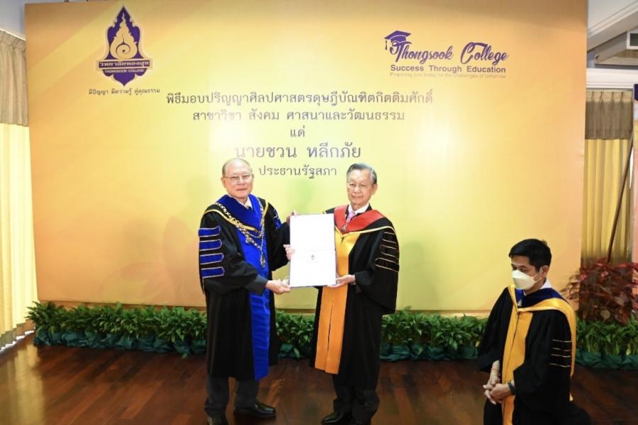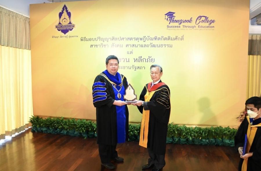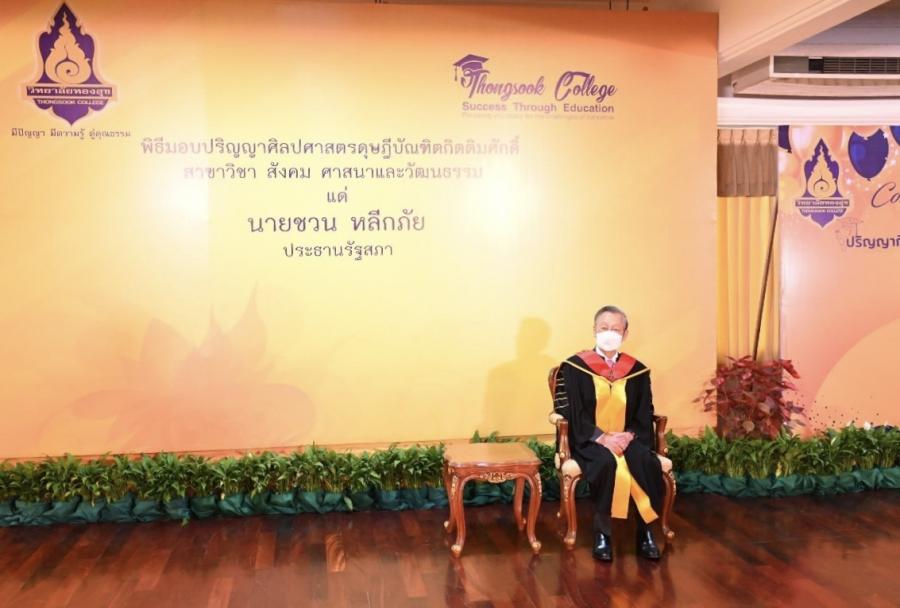 ประธานรัฐสภา เข้ารับปริญญาศิลปศาสตรดุษฎีบัณฑิตกิตติมศักดิ์ สาขาวิชาสังคม ศาสนา และวัฒนธรรม จากวิทยาลัยทองสุข