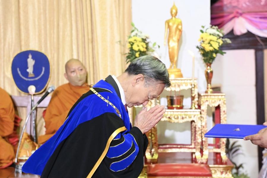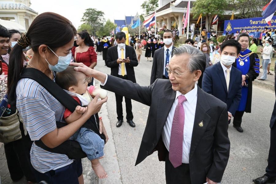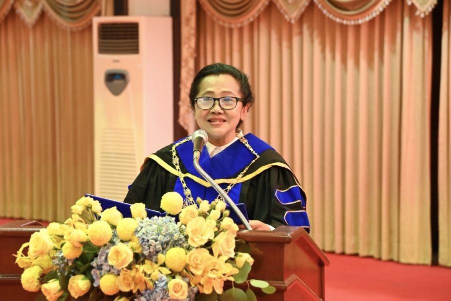 คำว่า "บัณฑิต" หมายถึงผู้ทรงความรู้ ผู้มีปัญญา บัณฑิตจึงต้องดำเนินชีวิตด้วยปัญญาเป็นผู้ที่มีความรู้คู่คุณธรรม และขอให้บัณฑิตทุกท่านนำความรู้ที่ได้จากการศึกษาเล่าเรียนไปใช้ให้เกิดประโยชน์ในการประกอบสัมมาอาชีพและฟันฝ่าอุปสรรคนานัปการด้วยกำลังใจที่เข้มแข็งและสติปัญญาที่ตั้งมั่นในแนวทางที่ถูกต้อง ดีงาม ไม่ว่าจะอยู่ในฐานะตำแหน่งหรือหน้าที่ใด ขอให้ยึดมั่นในคุณธรรม ความซื่อสัตย์สุจริต และความเพียงพอ ตลอดทั้งเป็นกำลังสำคัญในการพัฒนาสังคมและประเทศชาติด้วยความเชื่อมั่นว่า "ประเทศรุ่งเรือง เมื่อบ้านเมืองสุจริต" ขออำนาจแห่งสิ่งศักดิ์สิทธิ์ทั้งหลายในสากลโปรดอภิบาลประทานพรให้บัณฑิตทุกท่านประสบความสำเร็จในชีวิตในการประกอบภารกิจทั้งปวงตลอดไป