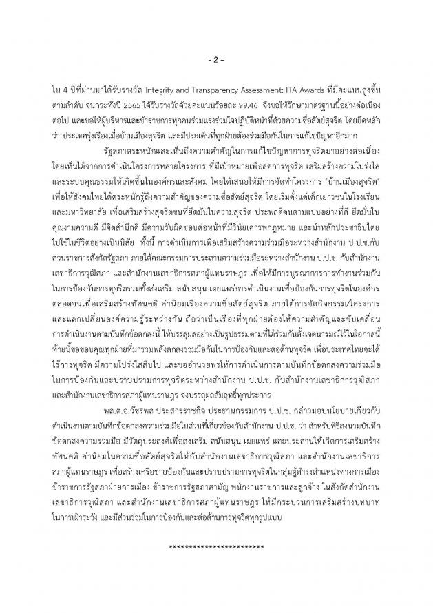 พิธีลงนามบันทึกข้อตกลงความร่วมมือในการป้องกันและปราบปรามการทุจริต ระหว่างสำนักงาน ป.ป.ช. กับ สำนักงานเลขาธิการวุฒิสภา และสำนักงานเลขาธิการสภาผู้แทนราษฎร (ต่อ)